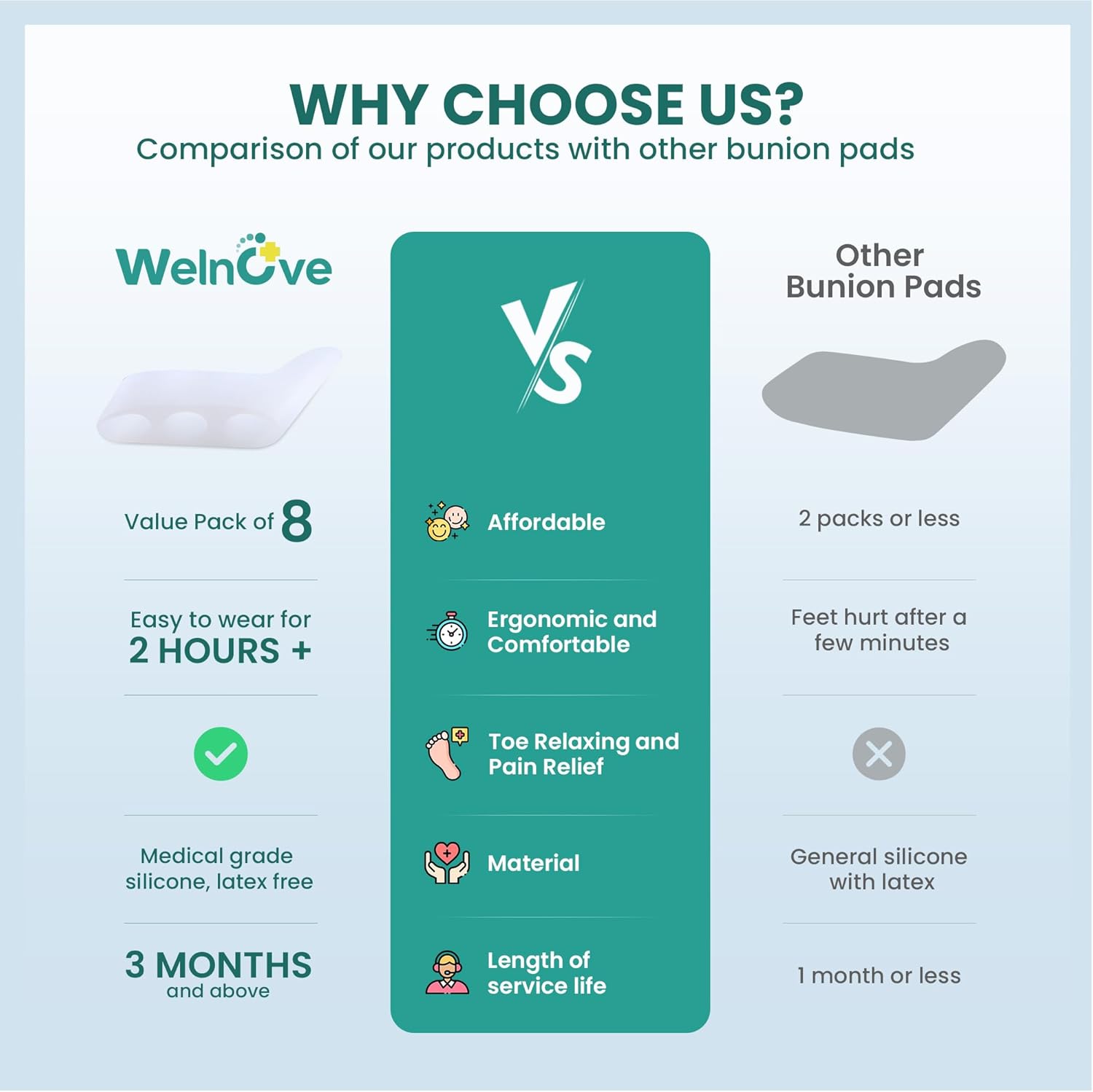 Welnove Gel Pinky Toe Separators - 8 Pack Pinky Toe Spacers, Bunion Cushions Pads for Women&Men, Silicone Little Toe Protectors for Preventing Rubbing & Relieve Pressure(White)