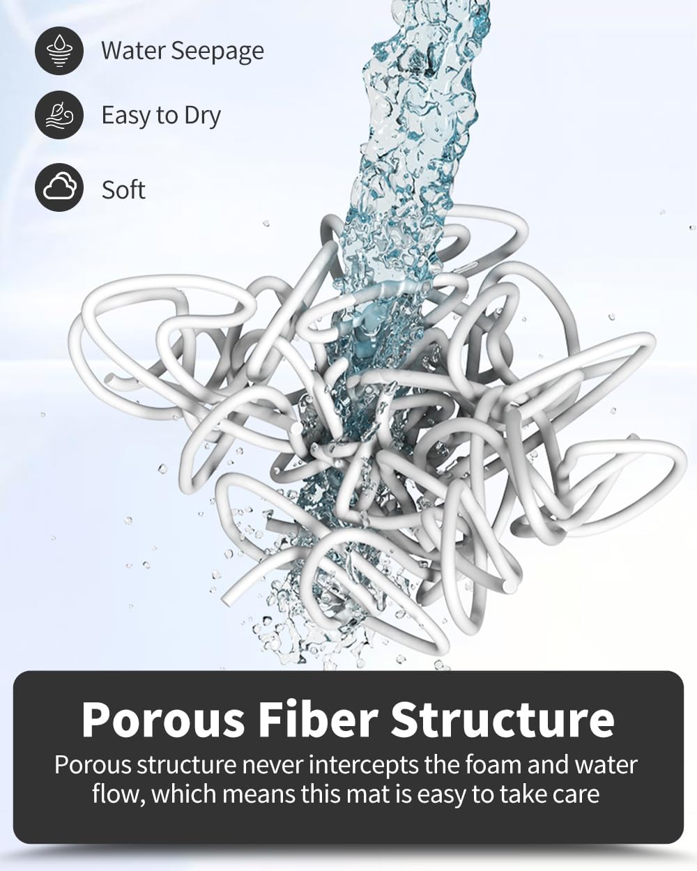 - Easy Cleaning: The foam on top can be easily rinsed off. You can simply use a showerhead and just leave the mat with lattice bottom up on your bathroom floor, or hang over your bathtub, your bath safety bar. The mat can dry fast, which creates no smell or marks on your floor.