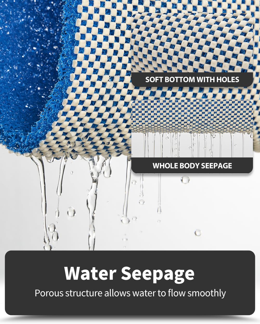 - Outstanding Draining: As natural drain holes, loop surface and lattice bottom can work together to encourage water to flow past the bath mat without getting caught. No need to worry about blocking water.