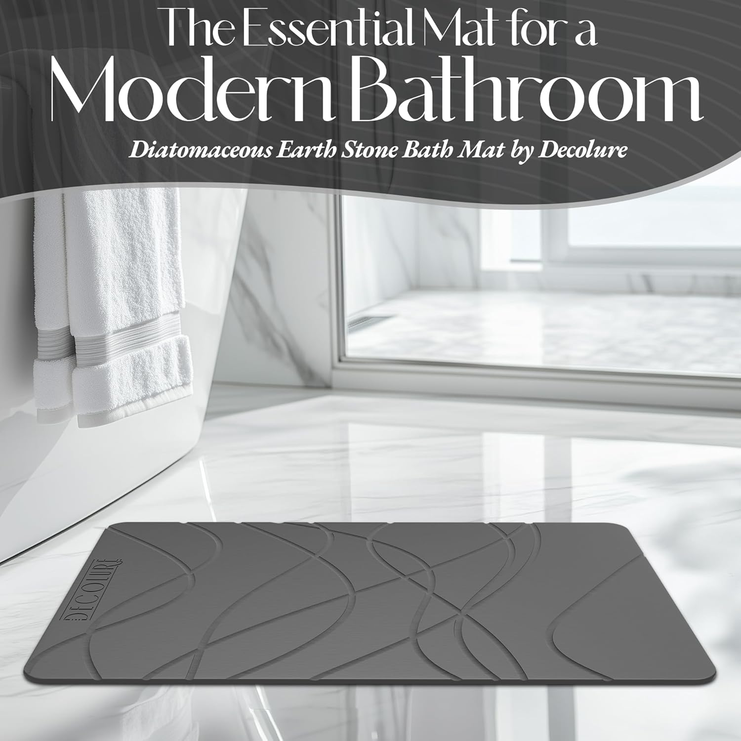 DECOLURE Stone Bath Mat, Quick Dry & Non-Slip Diatomaceous Earth Shower Mat for Bathroom, Luxurious & Easy to Clean Diatomite Stone Mat for Bathroom, Kitchen, High Density (Standard, Grey)