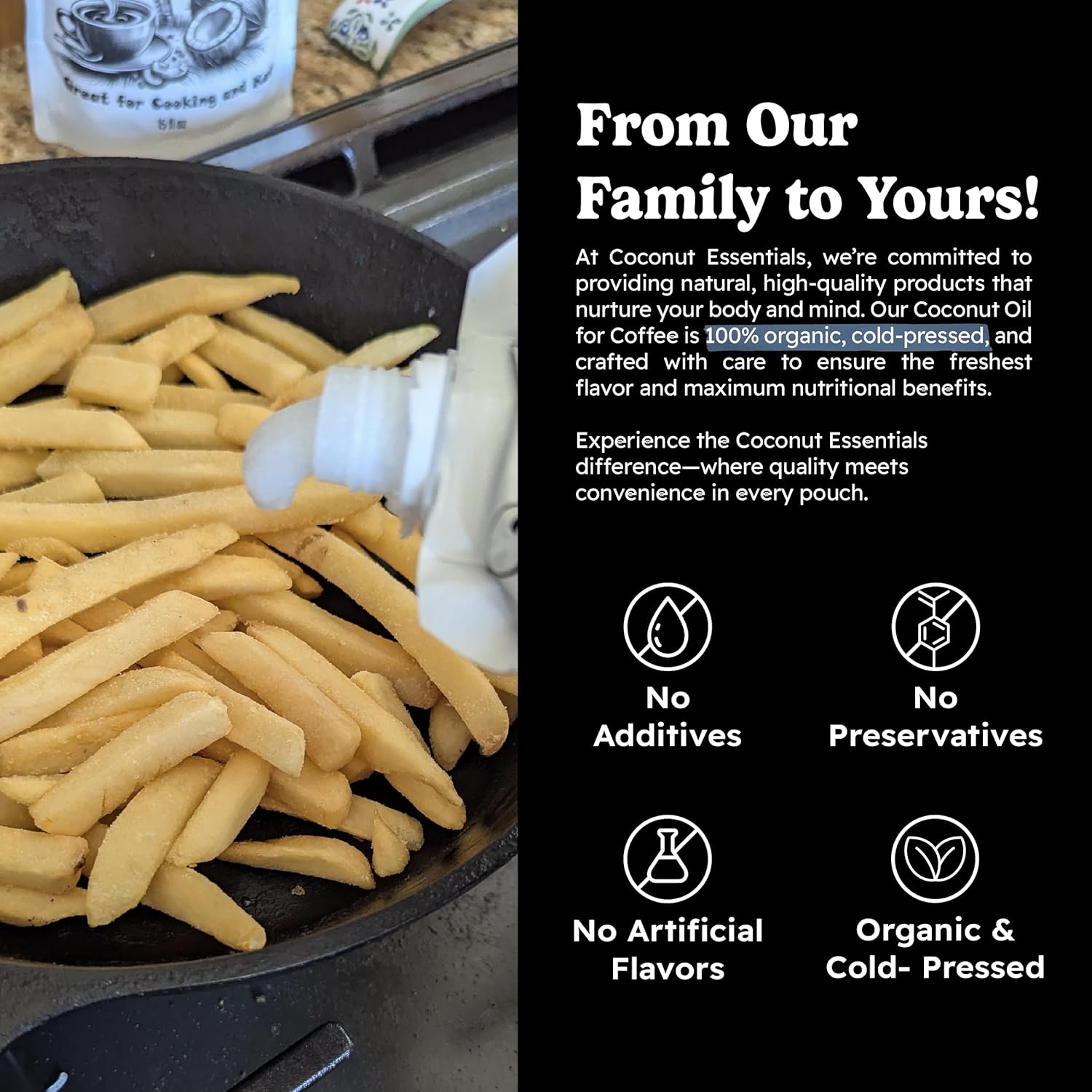 Coconut Essentials - Organic Coconut Oil for Coffee, Cold-Pressed, MCT Oil for Weight Loss, Brain & Digestive Health, Keto-Friendly, Natural Slim, 1 Pouch, 15 fl oz
