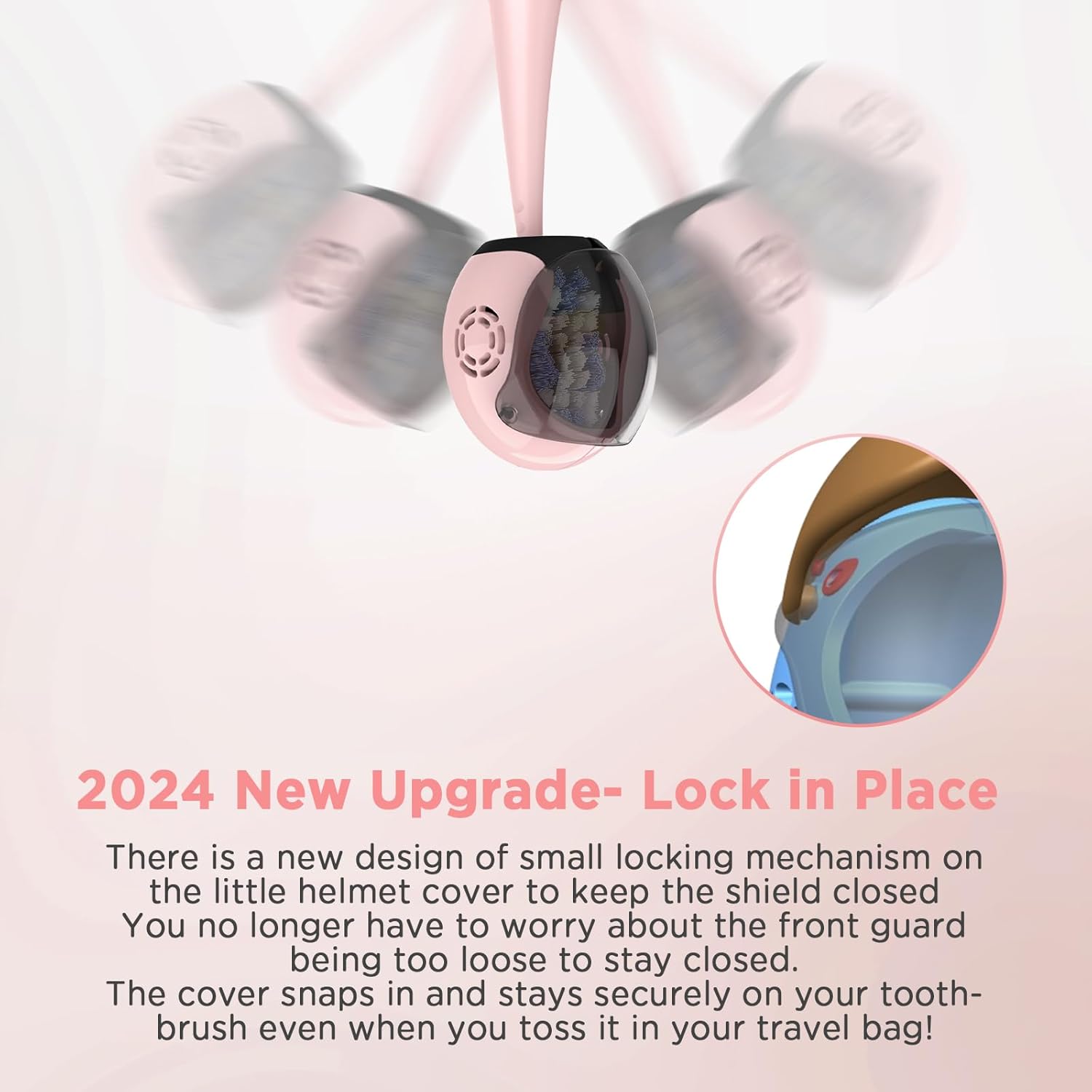 - SAFE LITTLE LATCH TO KEEP IT CLOSED: There is a new design of small locking mechanism on the little helmet cover, The toothbrush cover snaps in and stays securely on your toothbrush even when you toss it in your travel bag.