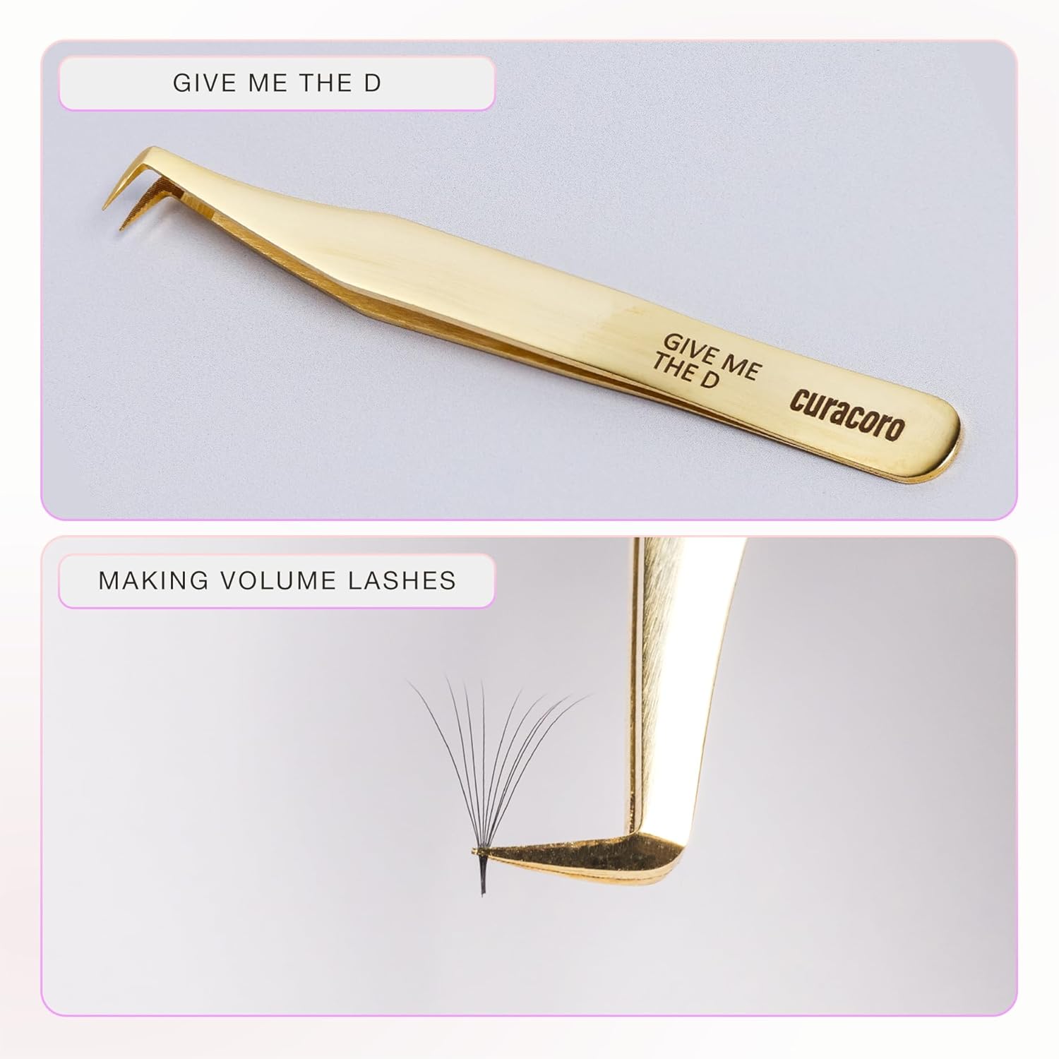 Curacoro Lash Tweezer - Professional & Precision Fiber Tip Grip Lash Tweezers for Eyelash Extensions, Multi Shapes & Purposes Tweezers for Volume, Isolation & Classic Lashes (Silver, Give Me the D)