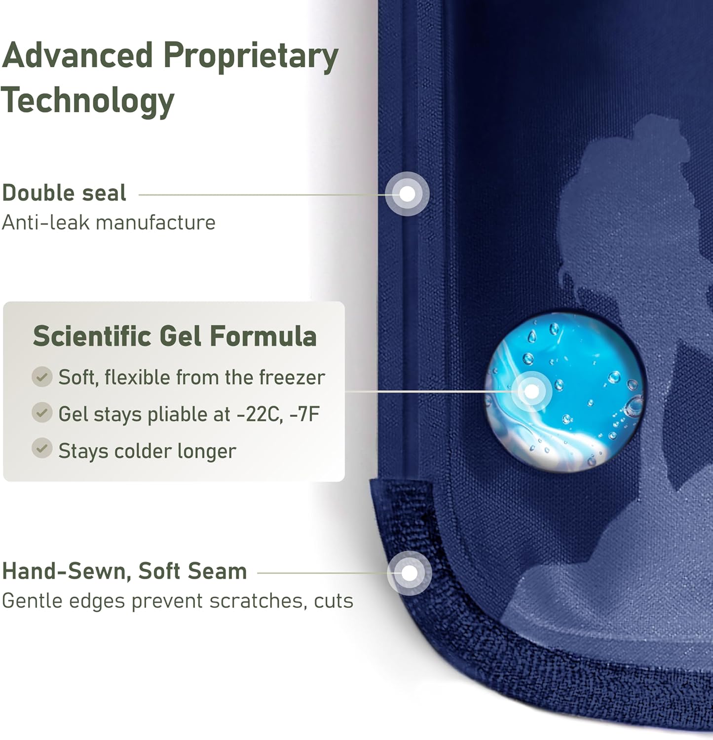 - COLDER FOR LONGER - Our unique proprietary gel does not freeze solid like water or other gel packs. Staying flexible at sub-zero temperatures, our ice packs stay pliable and with more gel than other packs, are colder for up to twice as long, providing better pain relief for muscles, joints, and tendons.