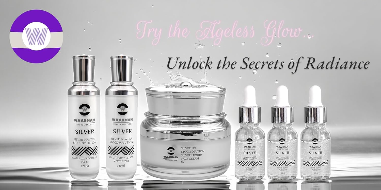Luxury Skin Care Silver Solution, Facial Cream, Moisturizer, Toner and Serum