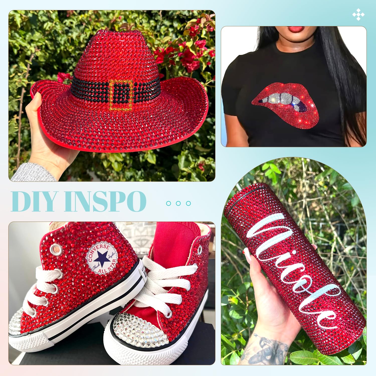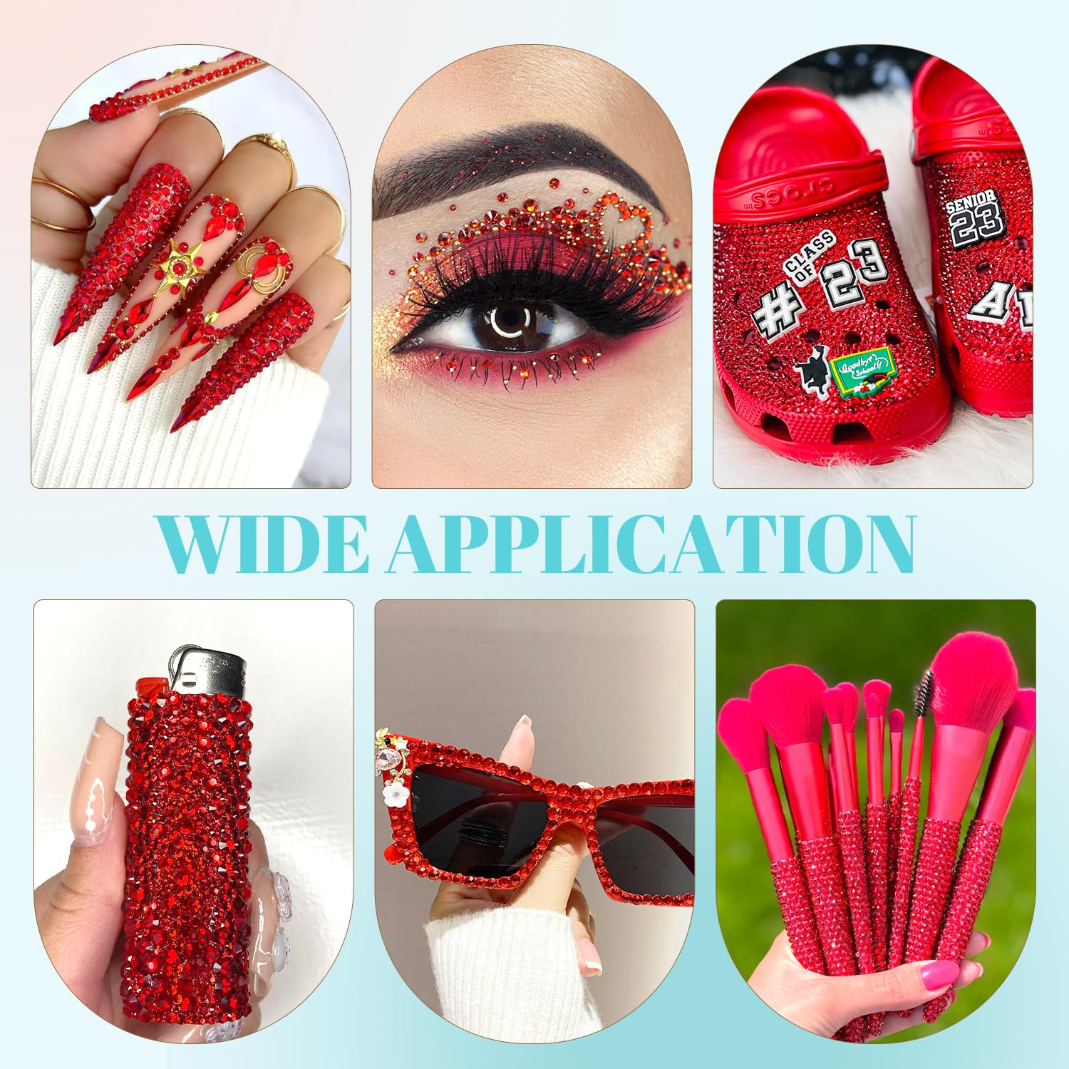 6100Pcs Resin Rhinestones for Crafting with 2Pcs 10ml B7000 Jewelry Glue, 1 Box Flatback Crystals Diamond (Red) for Bedazzling Crafts DIY Nail Art Non Hotfix Gems for Clothing Shoes Tumblers