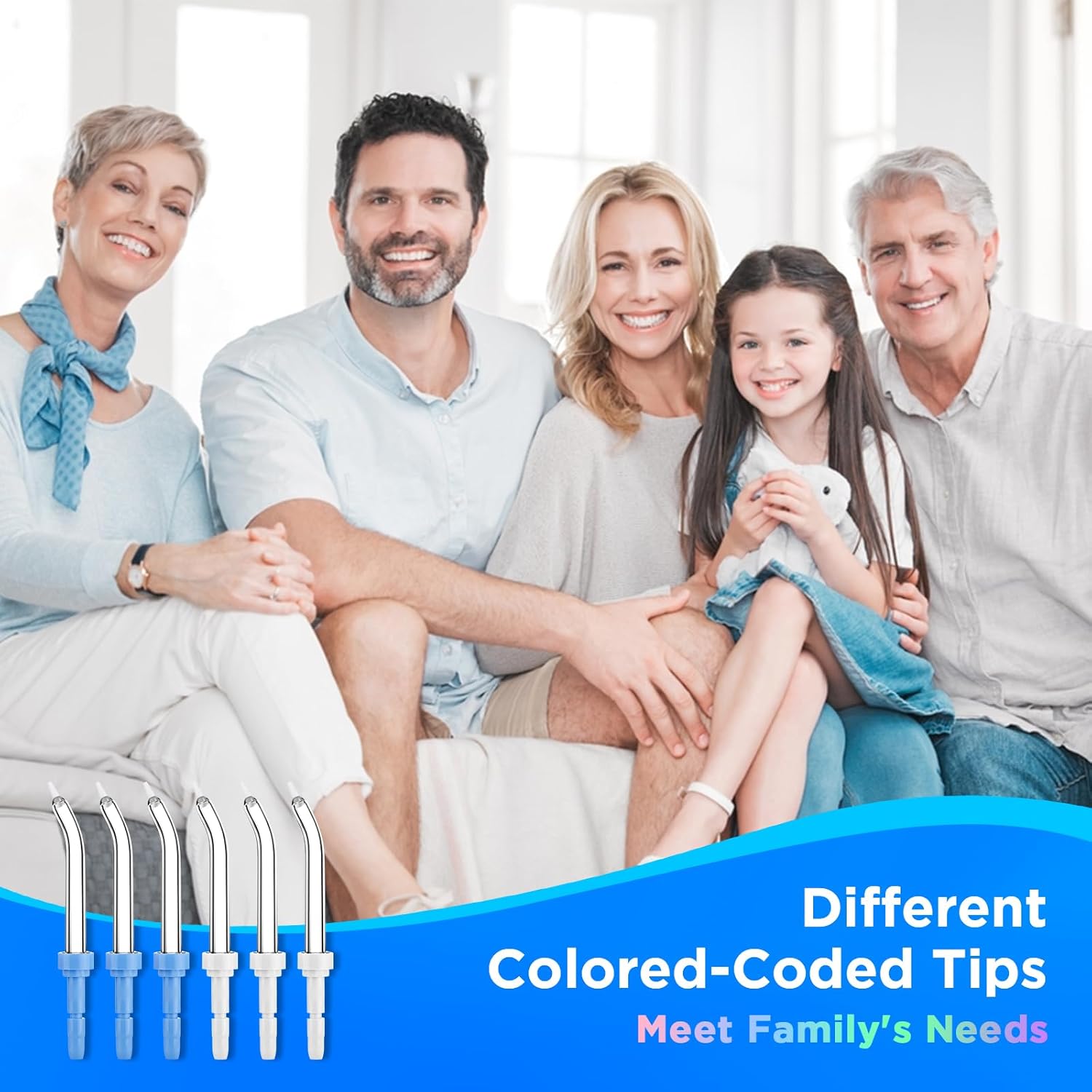 - Replacement Heads for Waterpik: The set comes with 6pcs various color coded replacement heads for Waterpik. Includes 6x Periodontal Tips, which meet your whole family’s needs without confusion as to which tip belongs to which member.