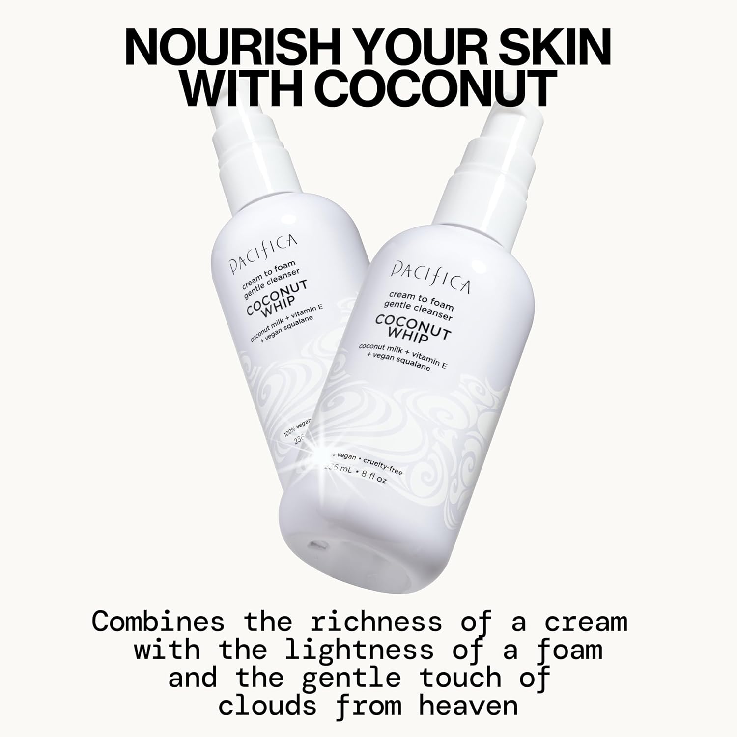 Pacifica Coconut Whip Cream to Foam Face Wash - Gentle Hydrating Facial Cleanser for Dry & Sensitive Skin, Moisturizing Daily Face Wash, Non-Comedogenic Vegan & Cruelty-Free, Dermatologist Tested 8oz