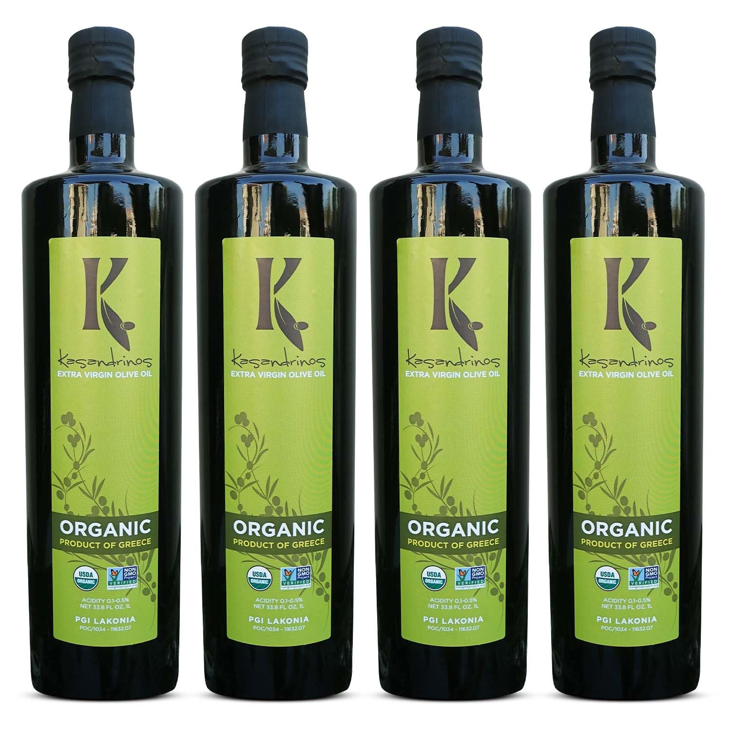 Kasandrinos Organic Olive Oil Extra Virgin, Polyphenol Rich Greek Olive Oil, 100% Organic First Cold Pressed, Mild + Delicate Flavor, Verified by Non GMO, 1 L / 33.8 oz (Pack of 4)