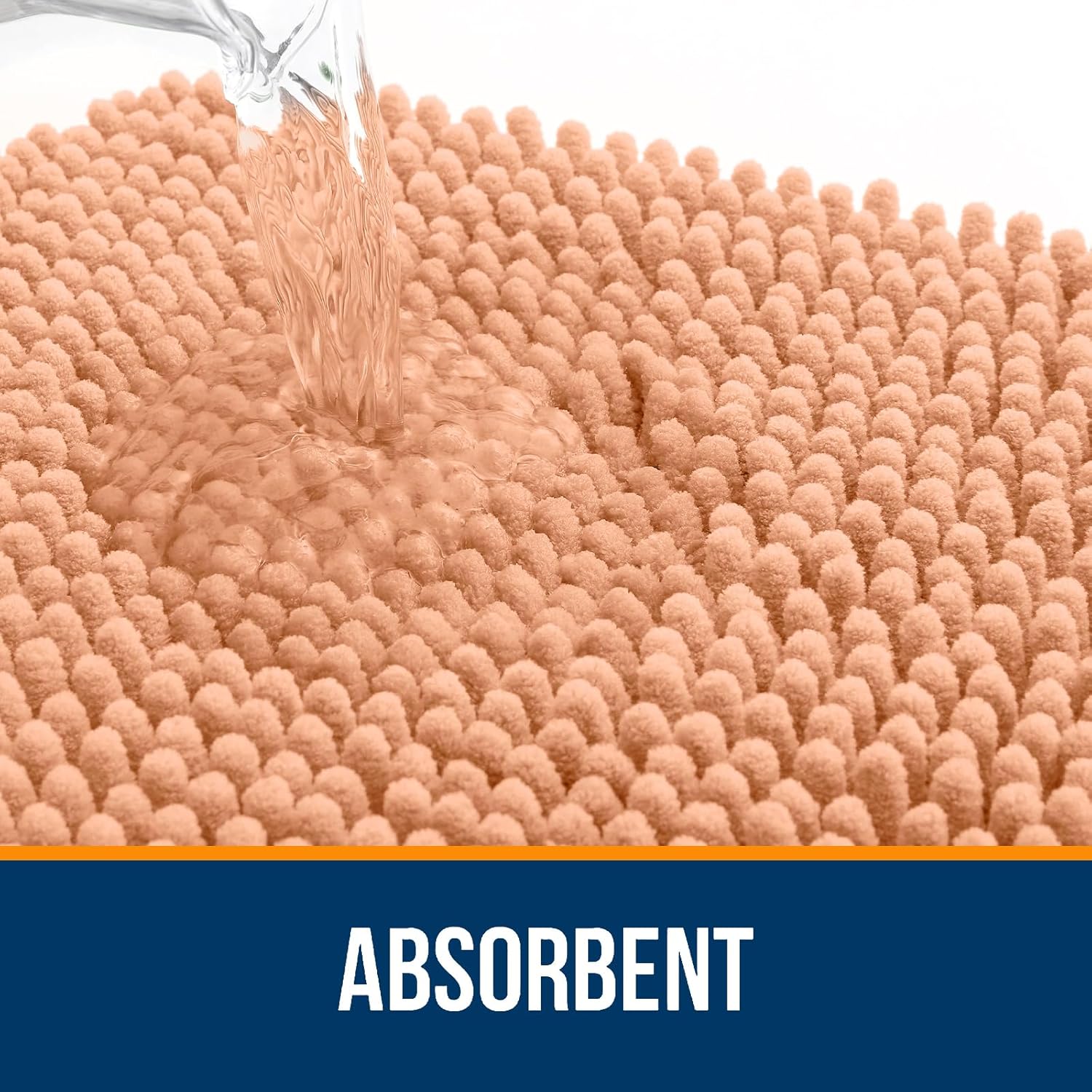 OLANLY Bathroom Rugs 36x24, Extra Soft Absorbent Chenille Bath Rugs, Rubber Backing Quick Dry, Machine Washable Bath Mats for Bathroom Floor, Tub and Shower, Home Decor Accessories, Peach