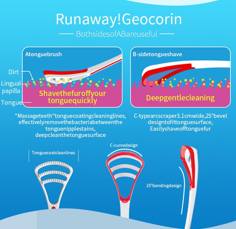 - Tongue Cleaning Brush: Scrape the tongue and freshen the breath, our tongue brush AB has two sides for each purpose, A side tongue brush B side tongue scraping.
