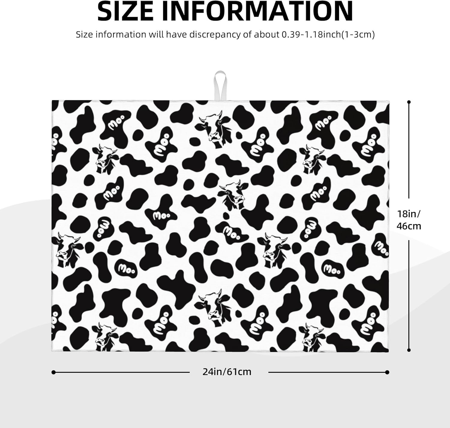 Black White Dish Drying Mat for Kitchen Counter 18"x24" Cow Print Dishes Pad Dish Drainer Rack Mats Microfiber Washable Absorbent Kitchen Decor