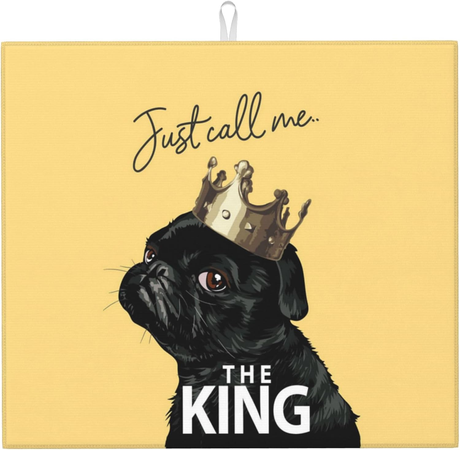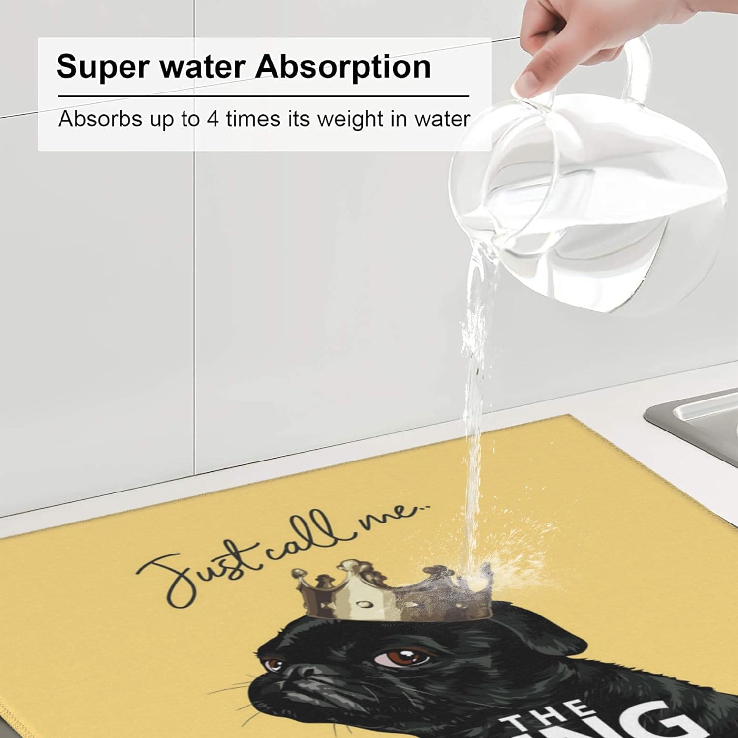 Funny Bulldog Dish Drying Mat for Kitchen Counter Washable Absorbent Reversible Microfiber Cute Dog Drying Pad Kitchen Accessories 16x18 Inch Yellow