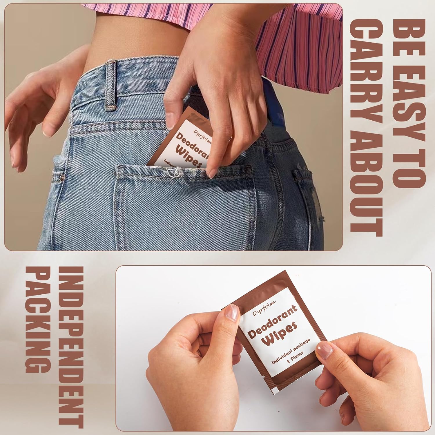 200 Pcs Underarm Deodorant Wipes, Individually Wrapped Antiperspirant, Sweat Body Wipes for Women Men Adults Sports Travel Essentials (Brown, 1 Count (Pack of 1))