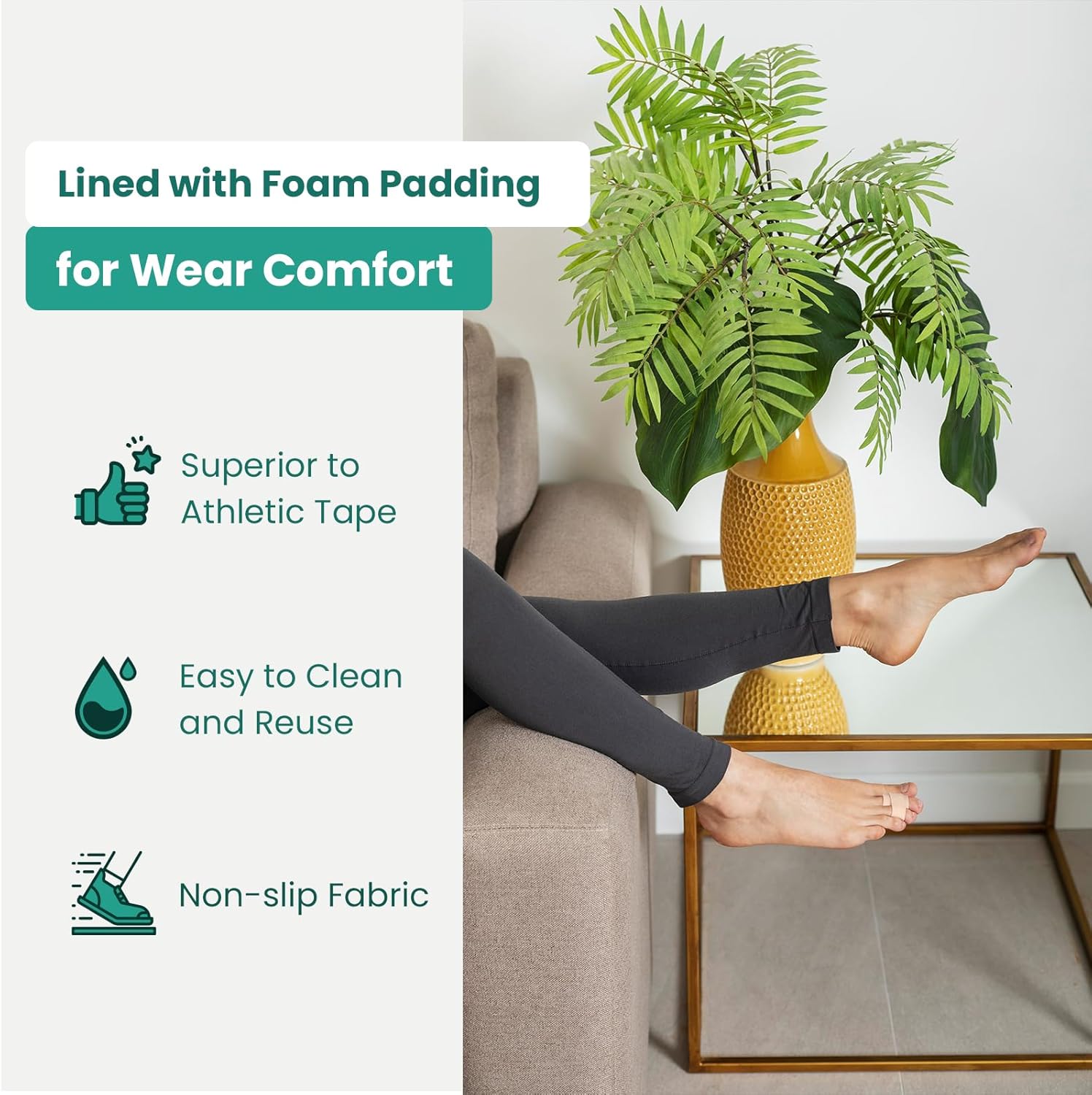 - Hammer Toe Protection - Lined with a cushioning latex foam layer to provide non-slip support while cushioning the toes. The soft fabric wrap cushions while gently straightening and aligning the hammer toe for proper positioning and protection from friction