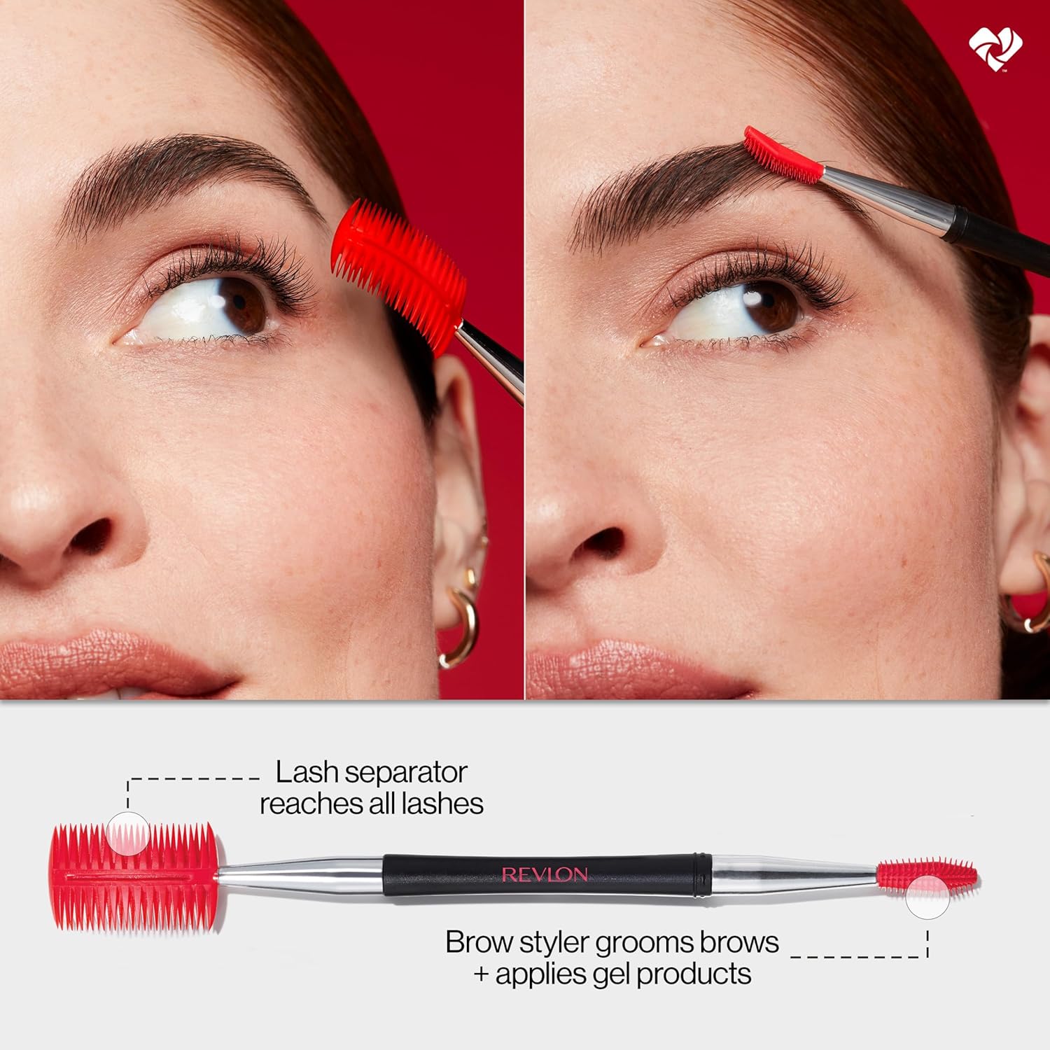 Revlon Lash & Brow Styling Tool, Dual Ended Eyelash Separator & Eyebrow Brush Spoolie, Works with Mascara & Brow Makeup, 1 count