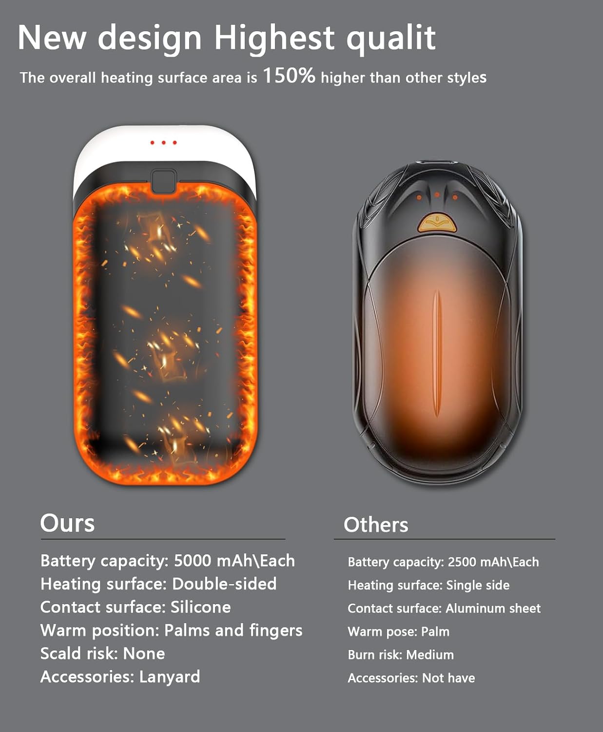 - 【What do you get】: 5000mAh Hand Warmers X 2 Packs, charging cable X 1Pack ,Lanyard X 2 Packs [1 year after-sales service]