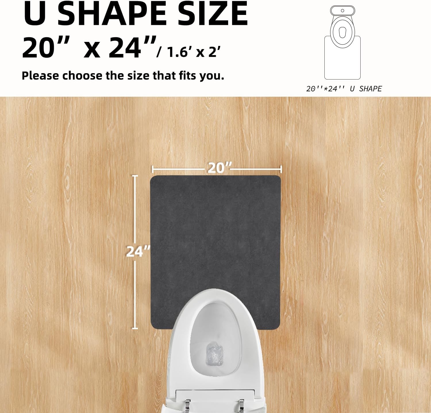 Toilet Rug, Thin Toilet Rugs U Shaped Washable Non Slip Absorbent Quick Dry Low Pile Toilet Mat, 20"x24" U Shape Dark Grey