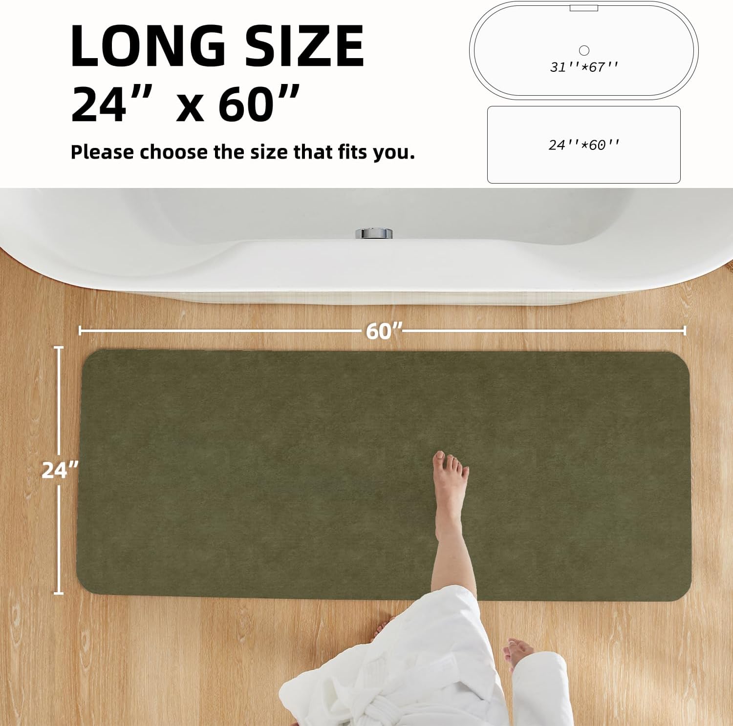 Bathroom Mat Quick Dry, Bathroom Rugs Non Slip Washable Thin Absorbent Bath Mat Fits Under Door Bathroom Floor Mat Perfect for Bath, Shower, or Sink 24"x60" Sage Green