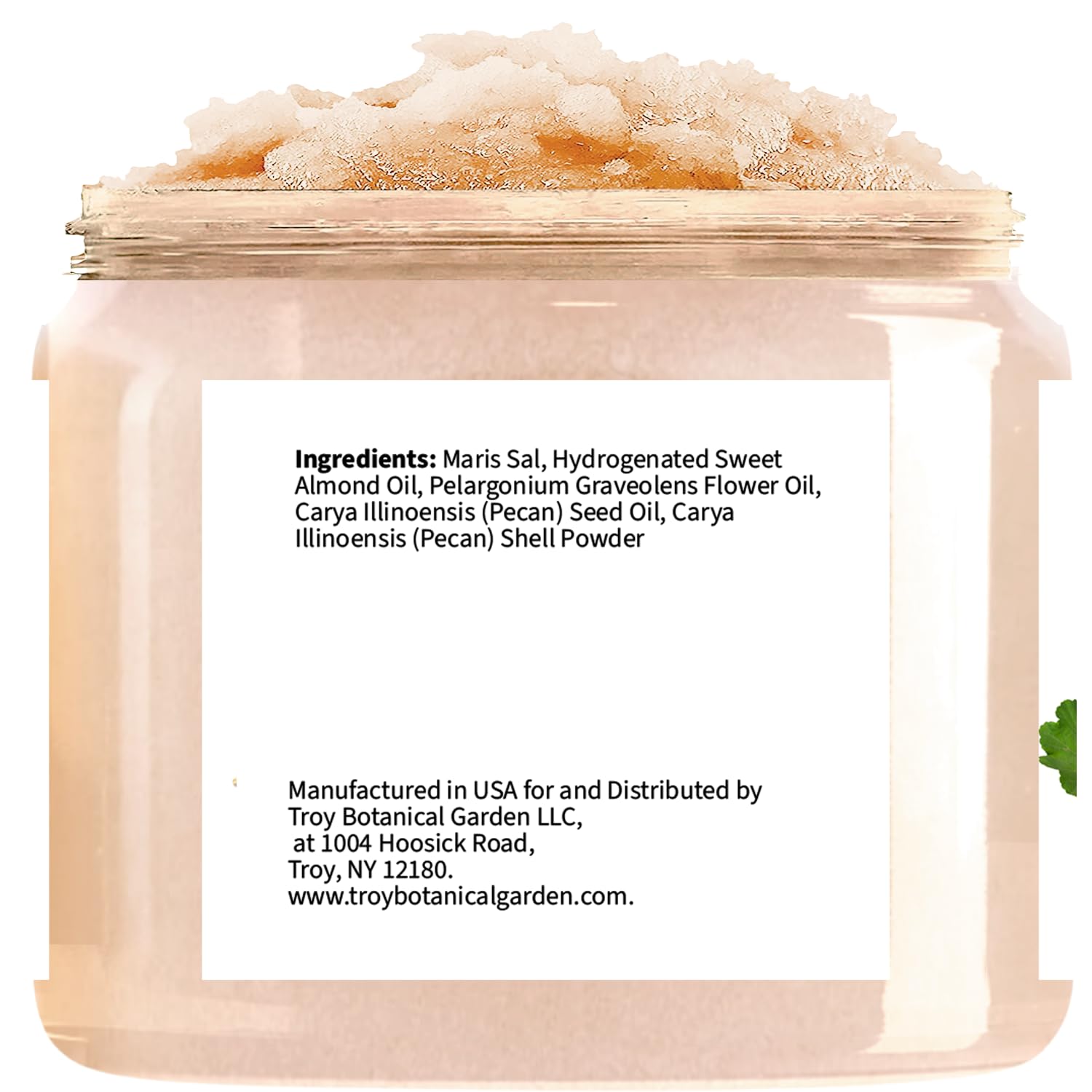 Geranium + Pecan Body & Foot Scrub 10 oz - a refreshing exfoliating experience, leaving your skin feeling smooth, soft, and revitalized - The best stocking stuffer.