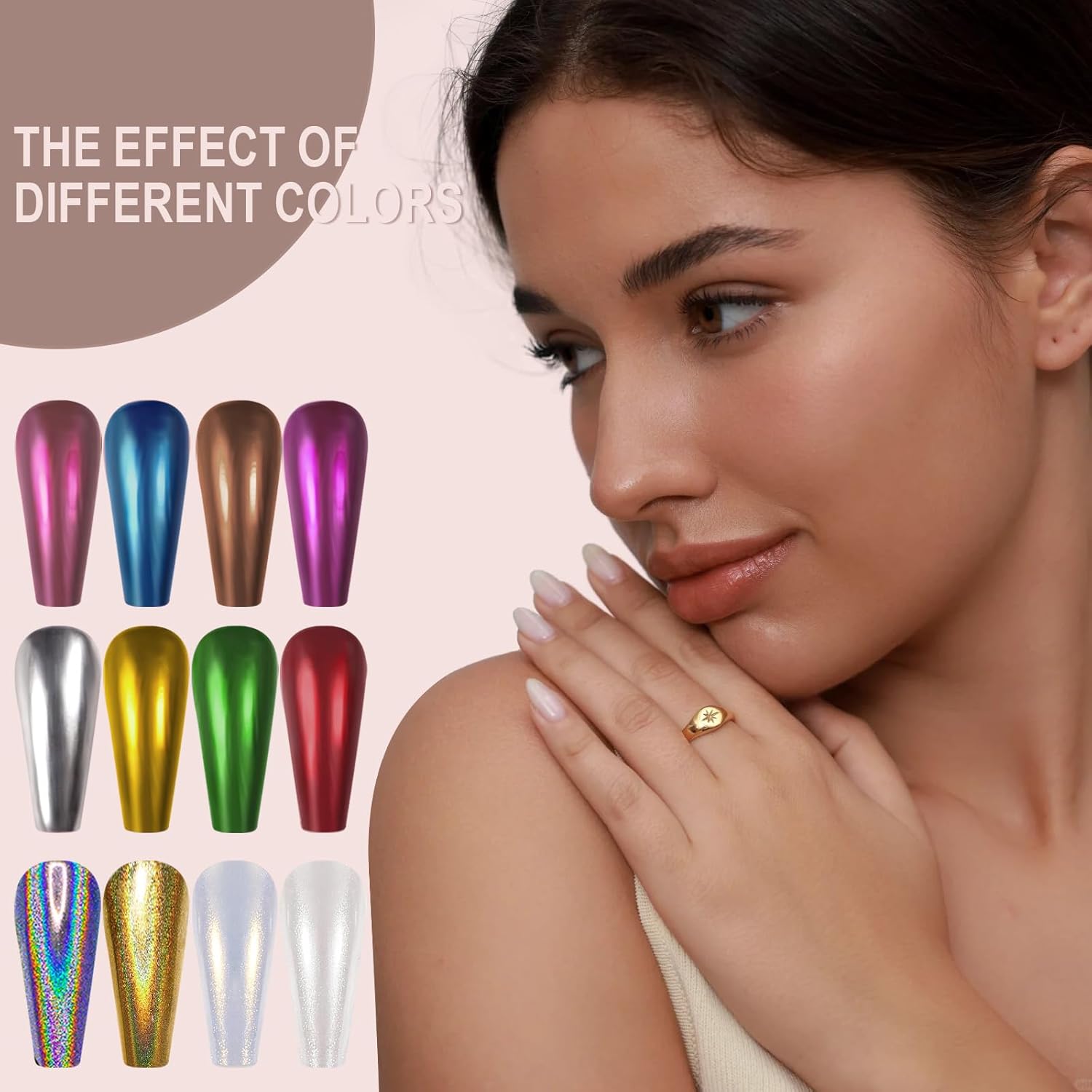 - QUALITY AND QUANTITY :Each jar has 1 gram of powder, instead of just a little bit per jar. Artdone chrome nail powder has very good shining mirror effect, they can made different effects with different background colors. If you need a darker color, you can choose black or another dark color as the base color, if you need a lighter color, you can choose a white、pink or transparent base color to applied powders