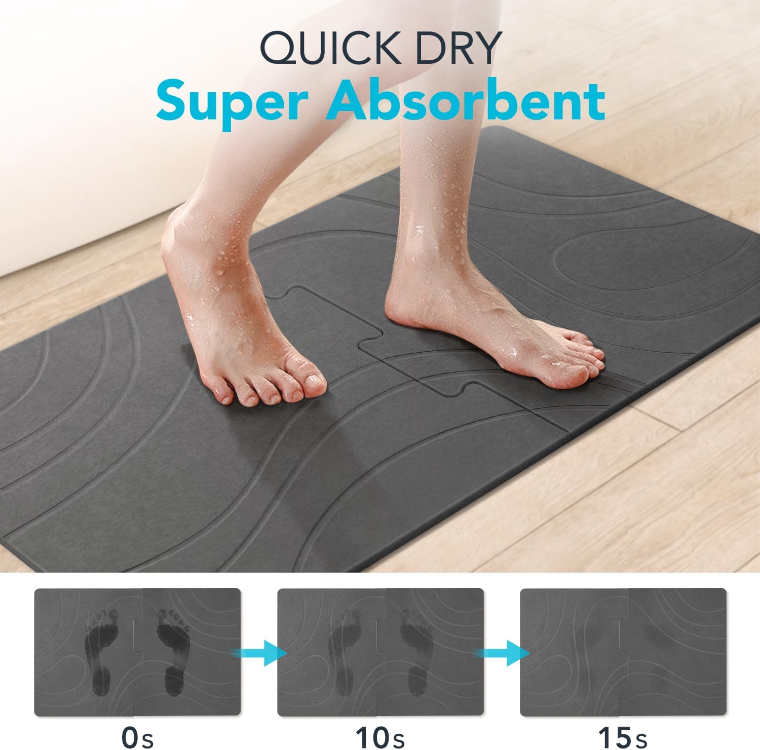 - Modern Elegance Design: Our quick dry bath mat is sleek, minimalist appearance effortlessly complements any decor, making them versatile enough for bathrooms, kitchens, entryways, dish racks, pet bowls, and poolside use