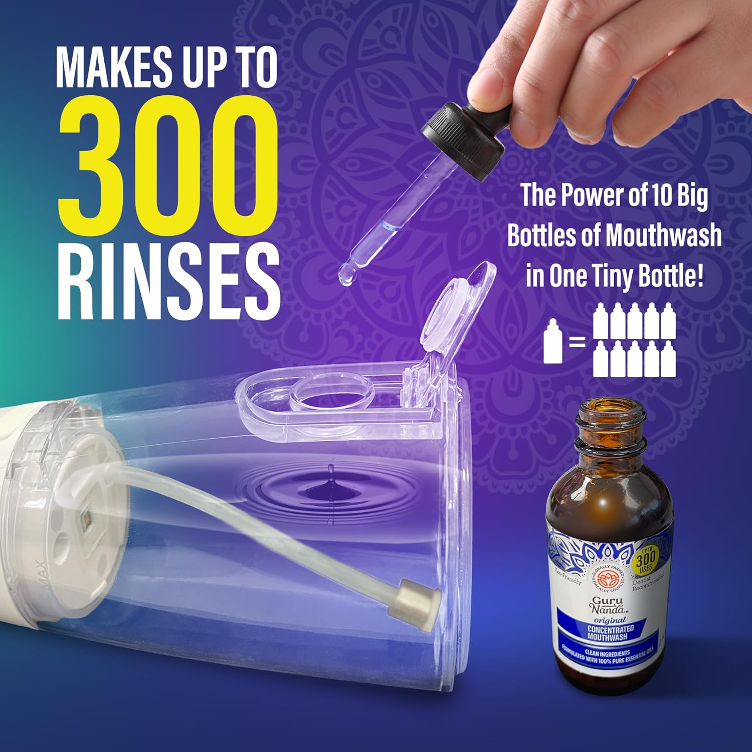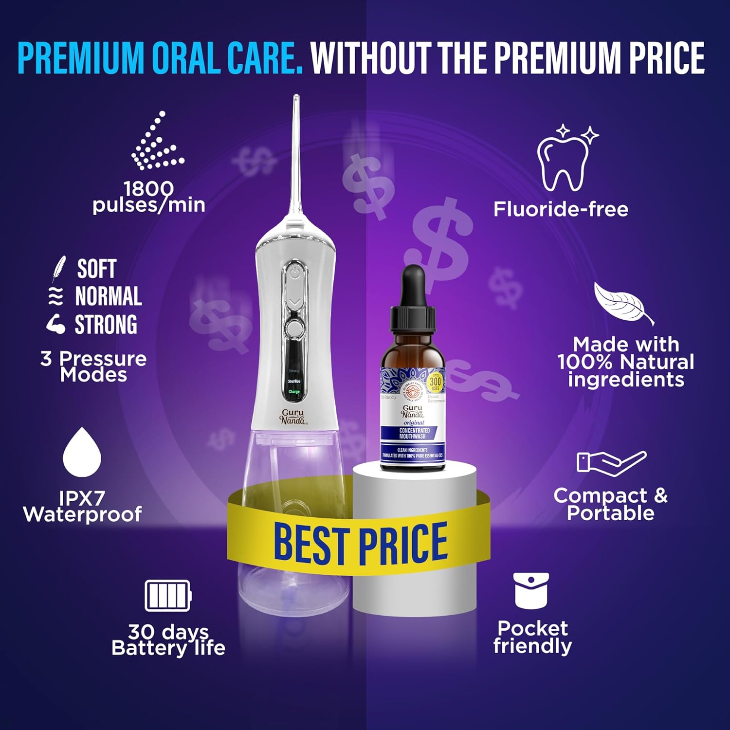 - COMPREHENSIVE ORAL CARE DUO: Experience a complete routine with GuruNanda's Advanced Water Flosser 2.0 with UV Mode combined with Concentrated Mouthwash Duo for refreshing & cleansing benefits—giving you a brighter smile & fresher breath every day.