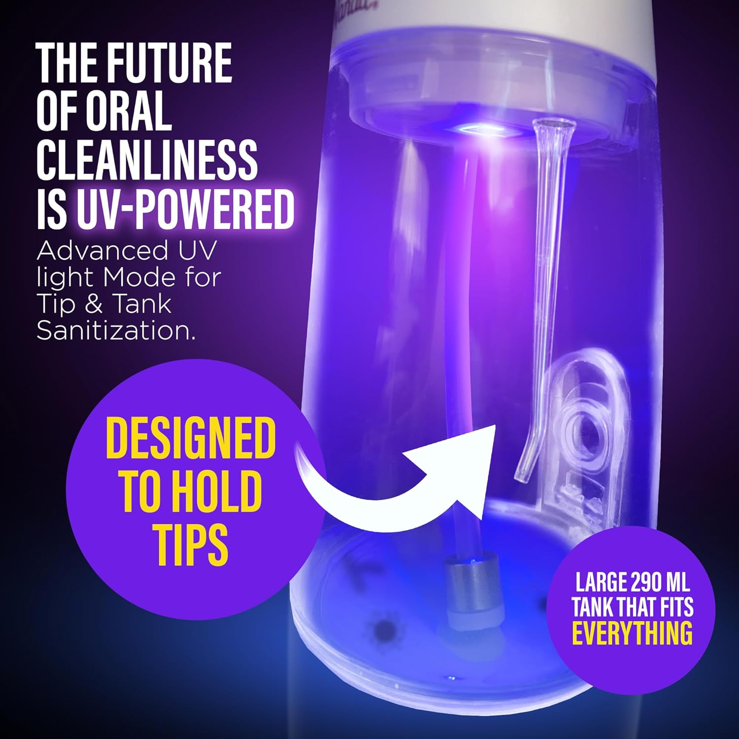 - UV SANITIZATION & SMART TIMER: GuruNanda’s advanced flosser features UV-C light to sanitize both tank & tips, along with a 90-second timer for a precise, hygienic clean—perfect for maintaining a fresh, daily oral care routine.