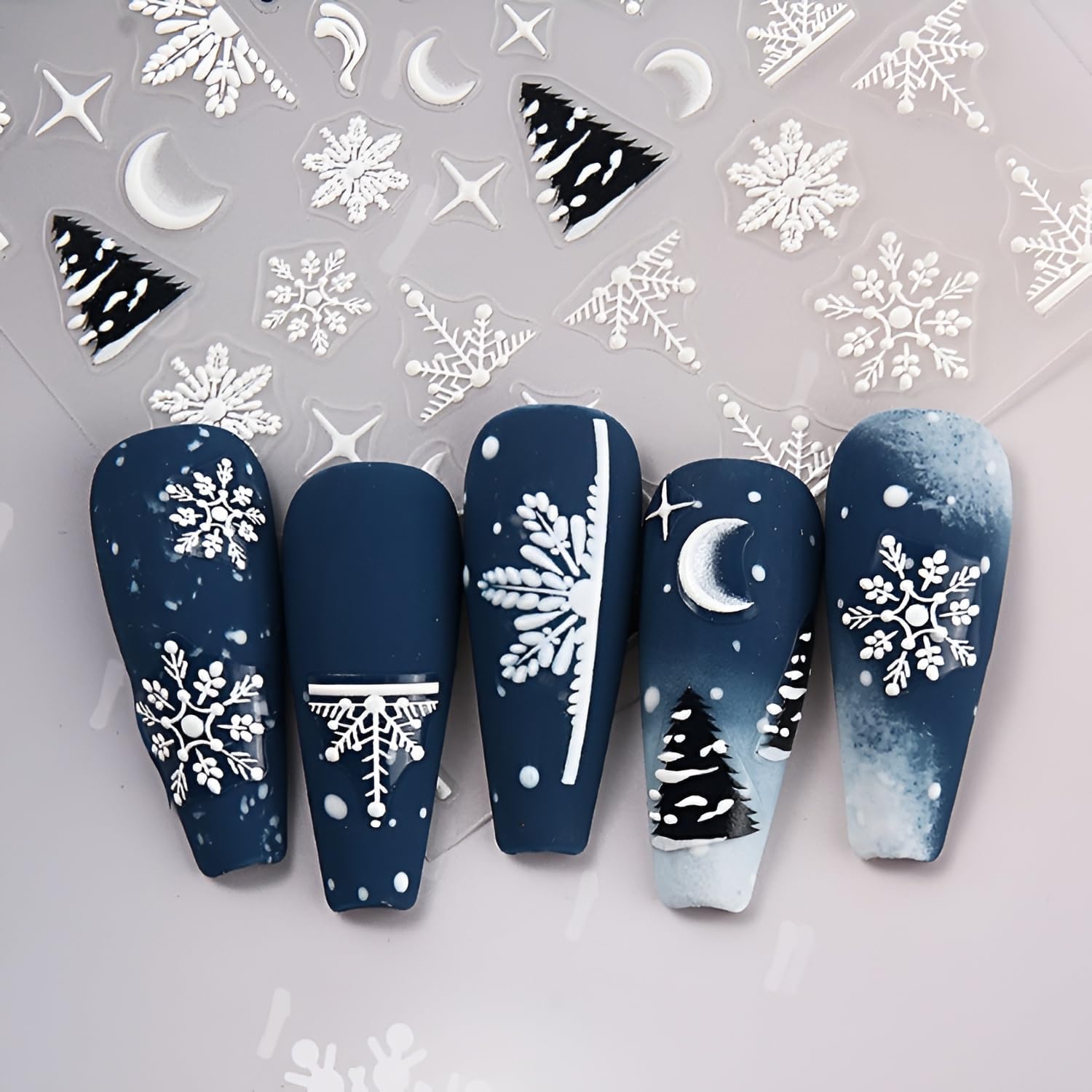 - 【Christmas Nail Design】Feature 5D embossed self-adhesive Christmas nail decals for nail art with classic Christmas motifs such as Christmas trees, snowman, and snowflakes.These designs bring the holiday spirit to your nails, making them ideal for women and girls to celebrate the season.