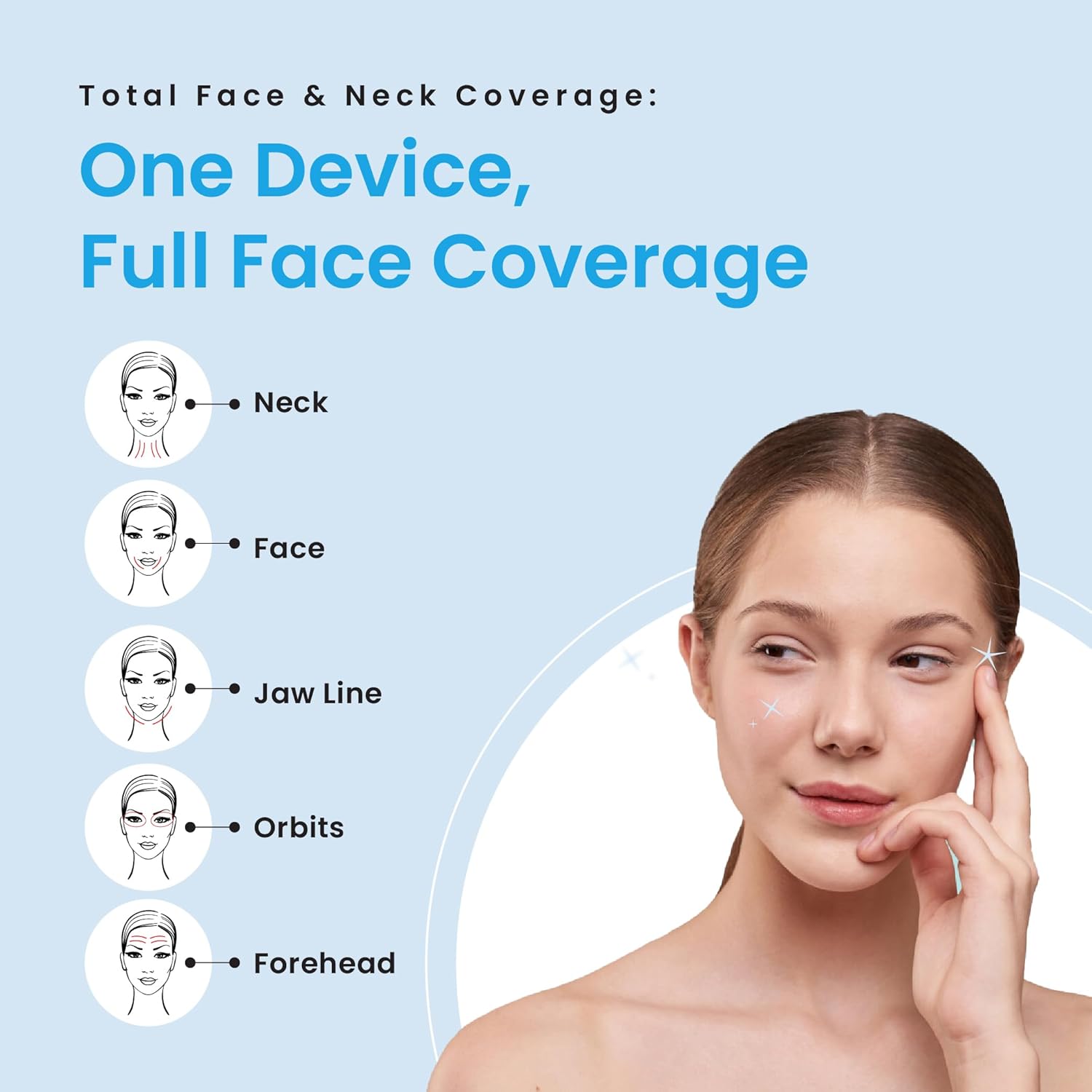 - Advanced Massage for Relaxation & Lift – Vibration massage stimulates circulation, supports elasticity, and provides spa-like relaxation while tightening jawline and neck contours.