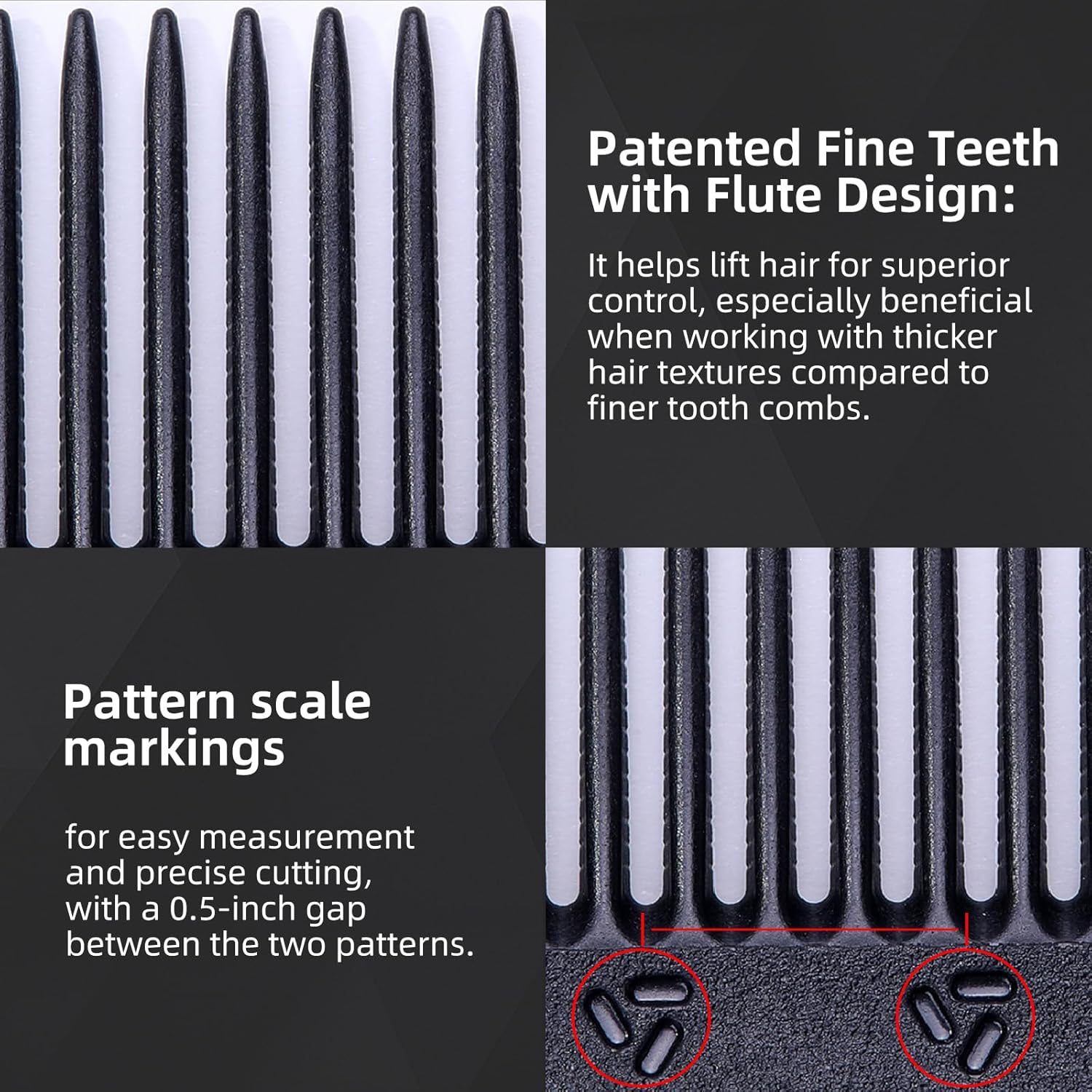 - Superior Hair Lift: The flute-designed teeth in our fine tooth comb offer better hair lift for superior control, particularly beneficial when managing thicker hair textures compared to regular combs.