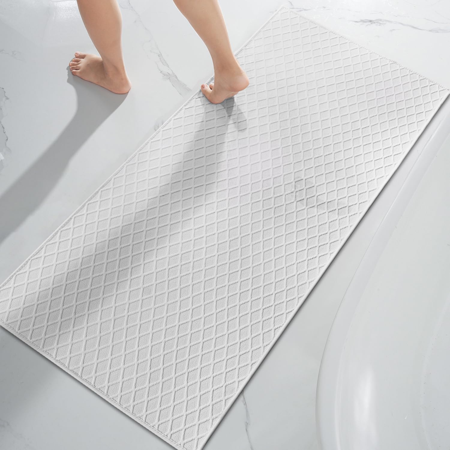 AMOAMI Bath-Mat,Ultra Thin Bath-Rugs Runner,Rubber Backed Bath Mats for Bathroom Non Slip, Absorbent Bath Rug for Bathroom Floor, Shower, Sink 2'x 4'(24" x 47") White