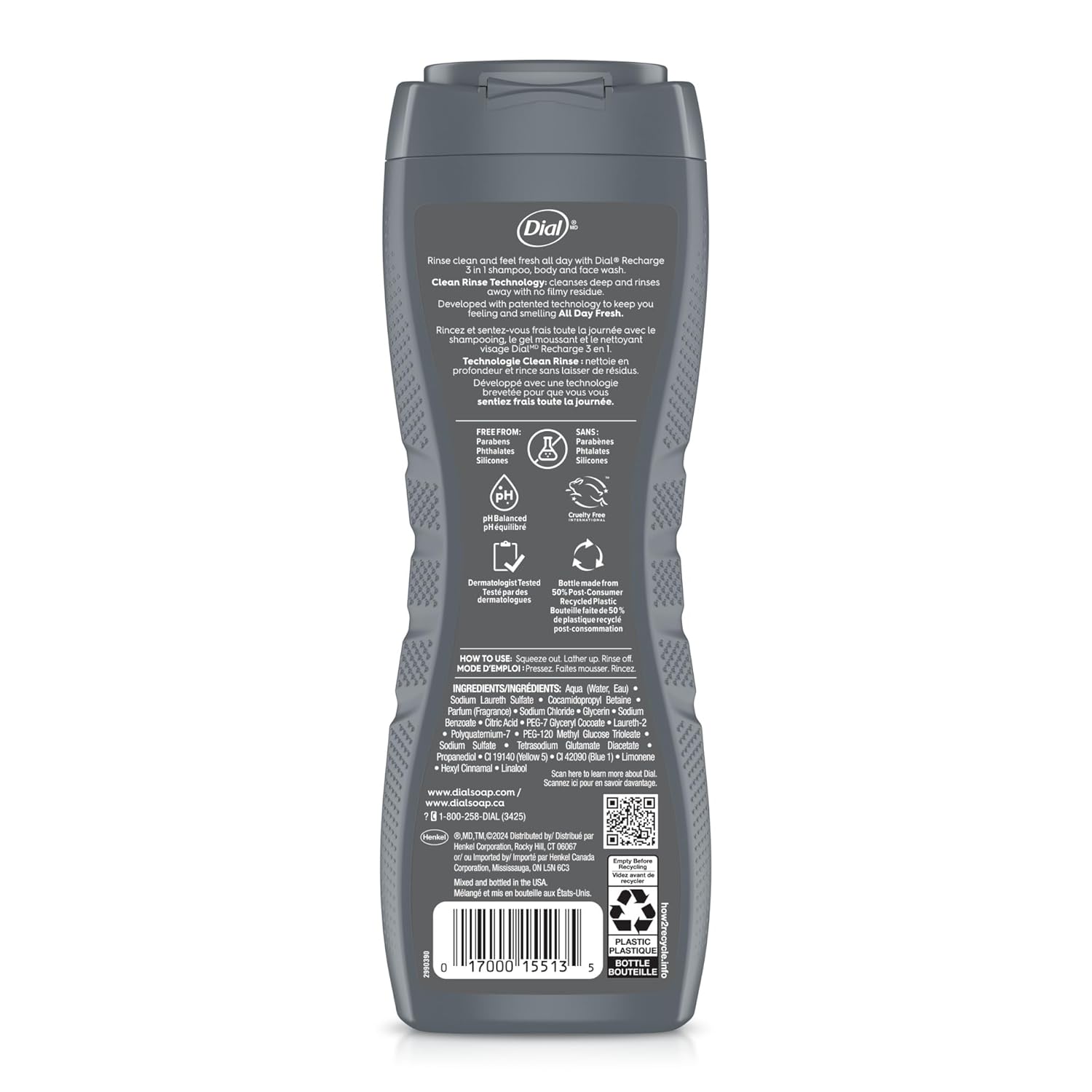 - 3 in 1 Shower Solution: Dial up your shower experience and enjoy all day freshness. This Dial Men 3-in-1 formula offers The convenience of shampoo, body and face wash in one handy bottle, engineered for an all-in-one solution