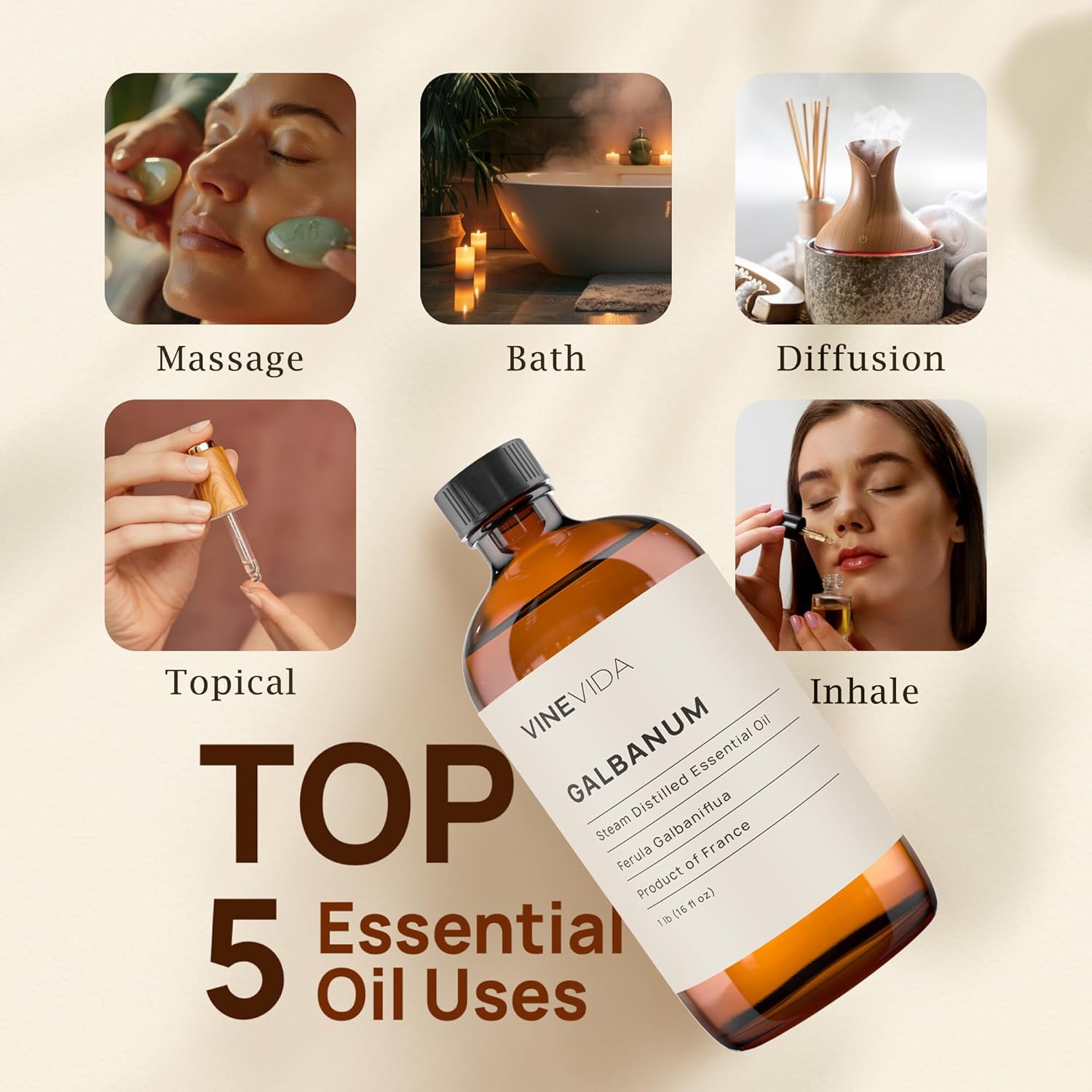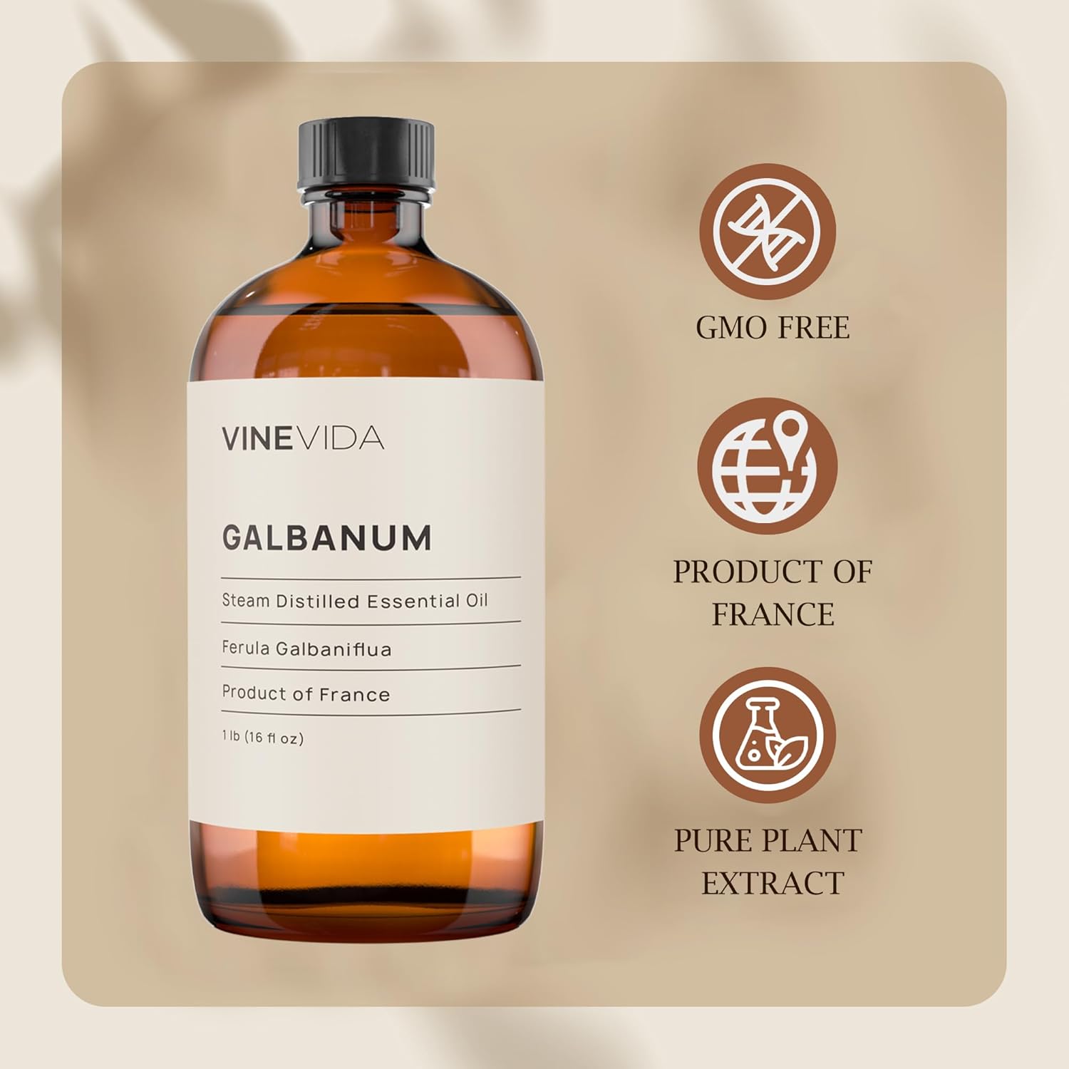 VINEVIDA Galbanum Essential Oil 16 oz - Undiluted, DIY Candle Scents, Bulk for Soap Making & Skin Safe