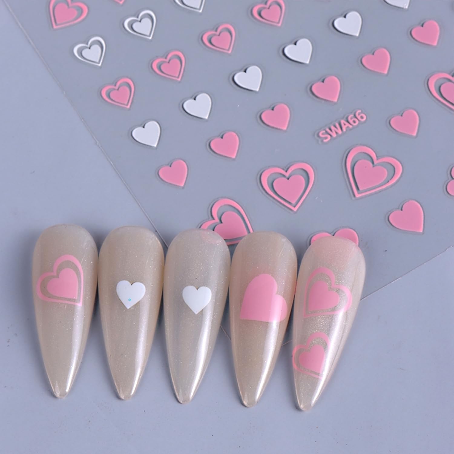 - Easy to Use:3D self adhesive heart nail stickers for nail art, it is very easy to apply.Just choose a suitable pattern and apply it on the nails in the correct position, you can use a layer of nail polish to fix for long-term lasting