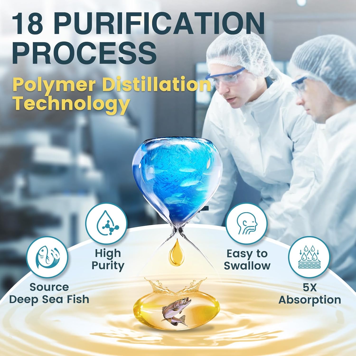 - PURE & HIGH-POTENCY: Your safety is our top priority. Fish oil supplements undergoes an 18-step purification process to remove harmful contaminants like mercury, far exceeding industry standards, ensuring a pure and effective product. Plus, our advanced softgel technology eliminates fishy aftertaste and burps, making daily intake a pleasant experience.