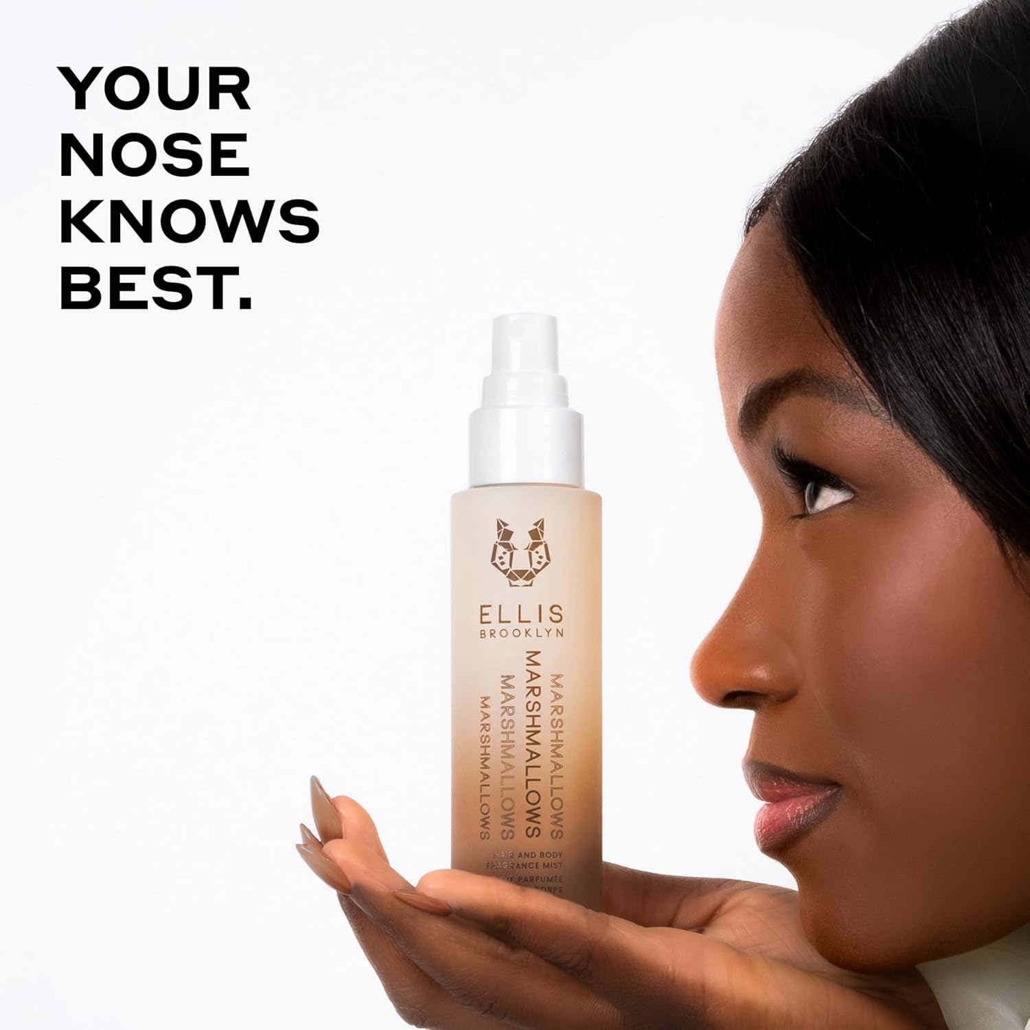 Ellis Brooklyn MARSHMALLOWS Hair And Body Fragrance Mist - Gourmand Perfume Mist with Marshmallow, Caramel Accord, & Milky Musks, Vegan Perfume Made In The USA, 50ml 1.7 Fl Oz