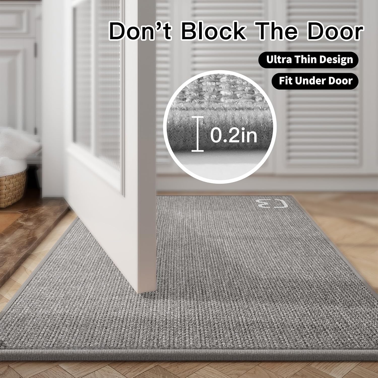 Ultra Thin Braided Bathroom Rugs Bath Mat Non Slip Washable, Rubber Backing Super Absorbent Thin Bathroom Rug Fit Under Door, Quick Dry Entrance Bath Rug Shower Floor Mat, Gray 20"x32"