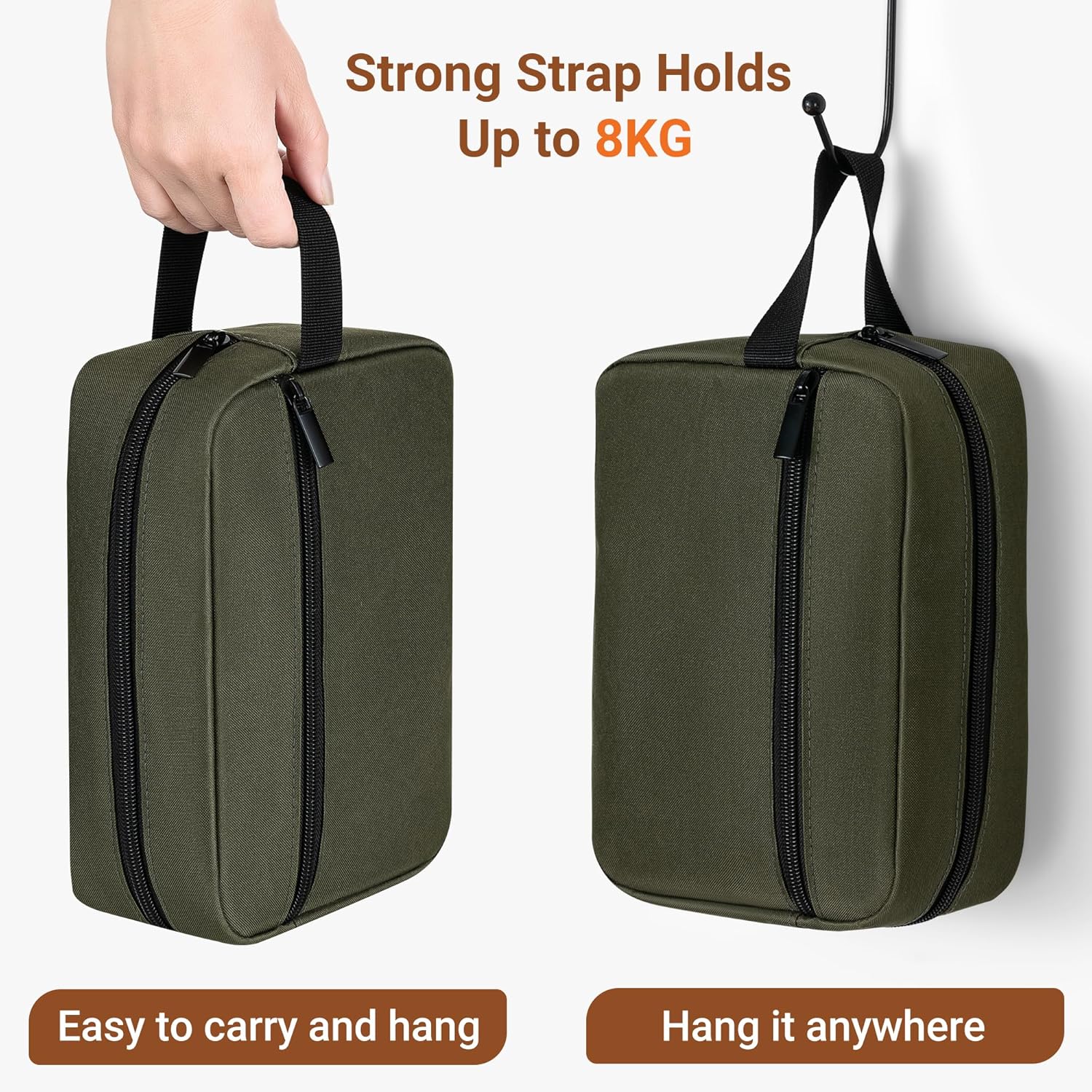 - Toiletry Bag Material & Workmanship:Crafted from 300D cationic Oxford fabric for durability and odor resistance. Features lightweight, reinforced stitching on handles (supports up to 8 kg/17.6 lbs) and a smooth zipper for easy access