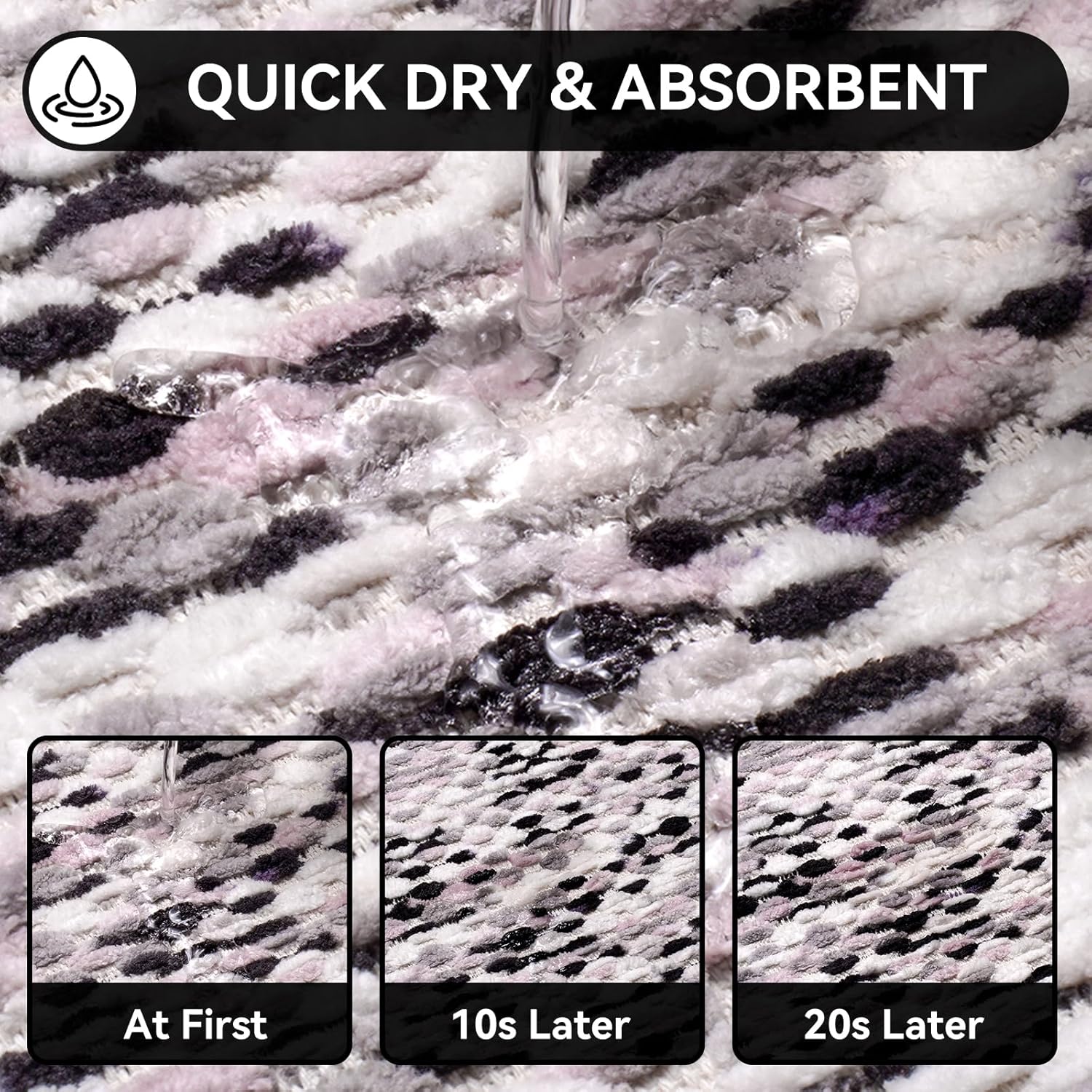 - Quick Dry & Super Absorbent:This chenille material can immediately dry your feet when you step on them, keep the water to stay on and in the mat and not spill over onto the floor,and prevent the floor from getting wet