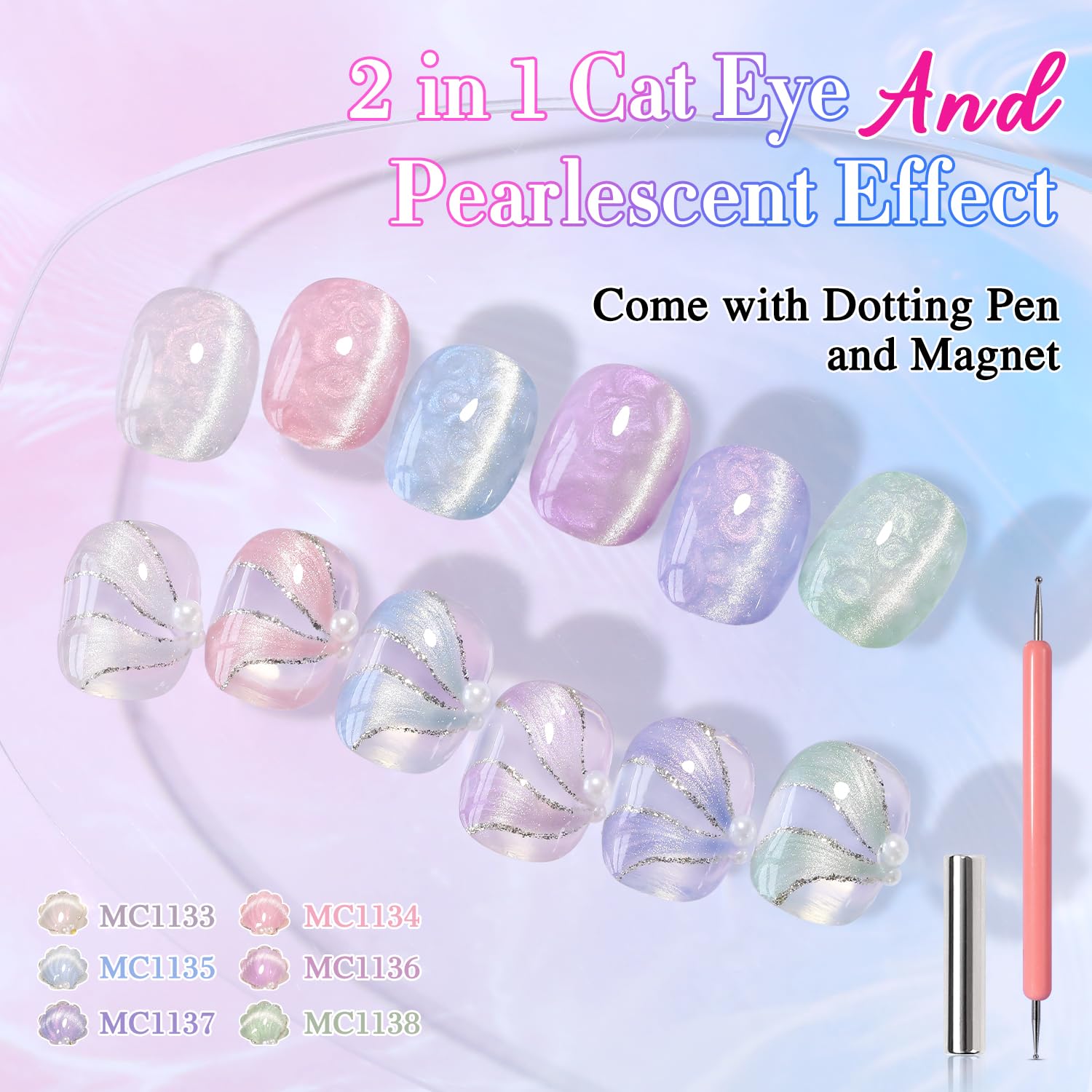 - 6 Pcs Same Color Same Bottle Cat Eye Gel Polish: 6pcs 15ml gel polish for all season, will come with color swatches.These gel polish kit need to be cured under UV or LED Lamp for 60-120s. Must apply with Base Gel and Top Coat. Please shake the bottle or warm it with hot water before use, to acheive a better effect.