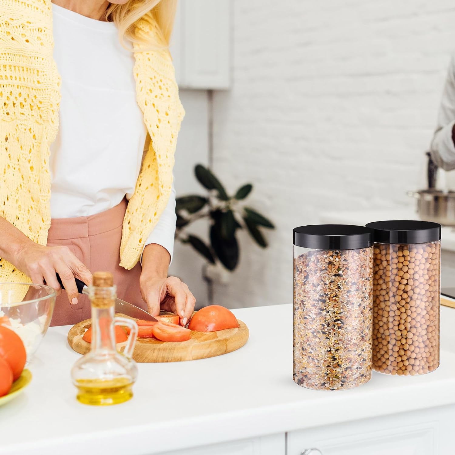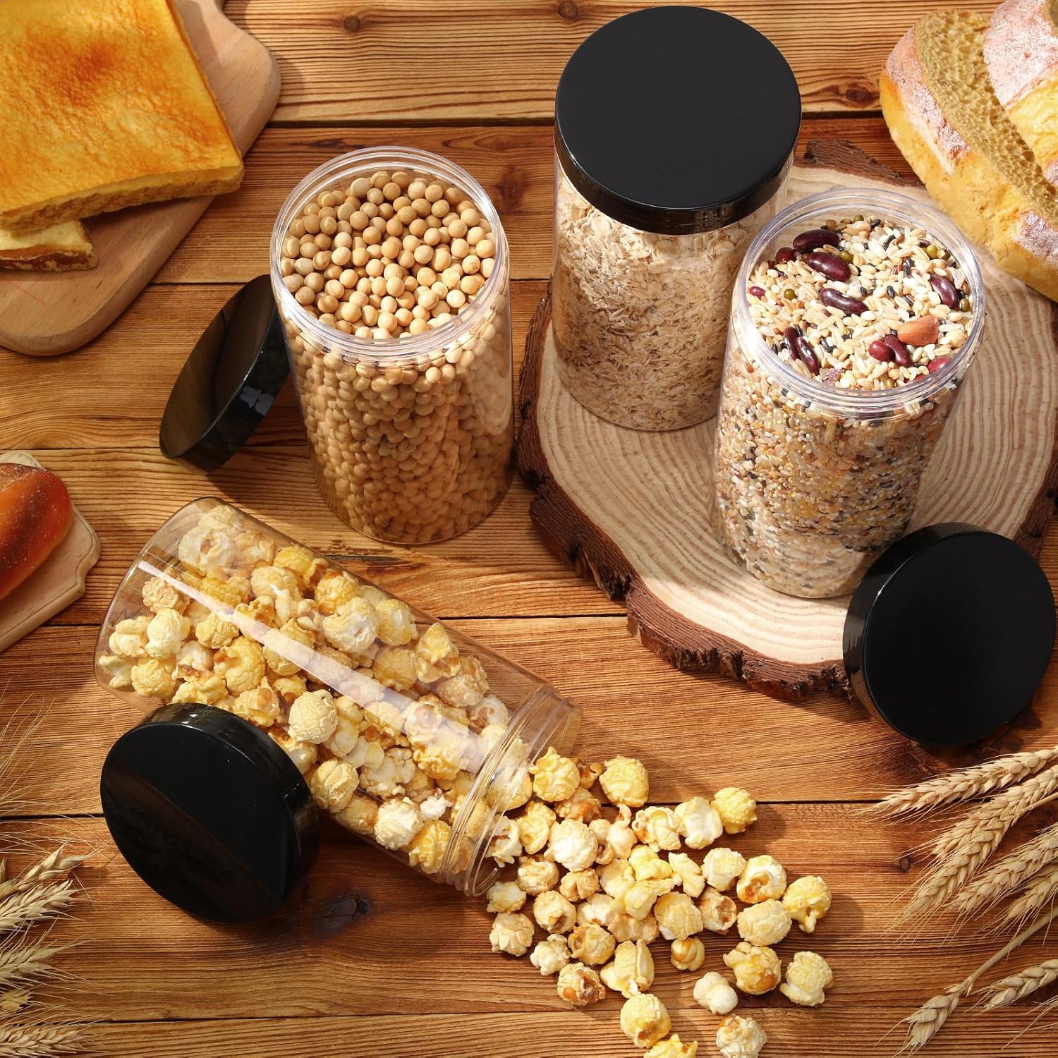 - What you receive: there are 4 pieces plastic jars with white screw-on lids; They are reliable and refillable, measuring about 32 oz in capacity