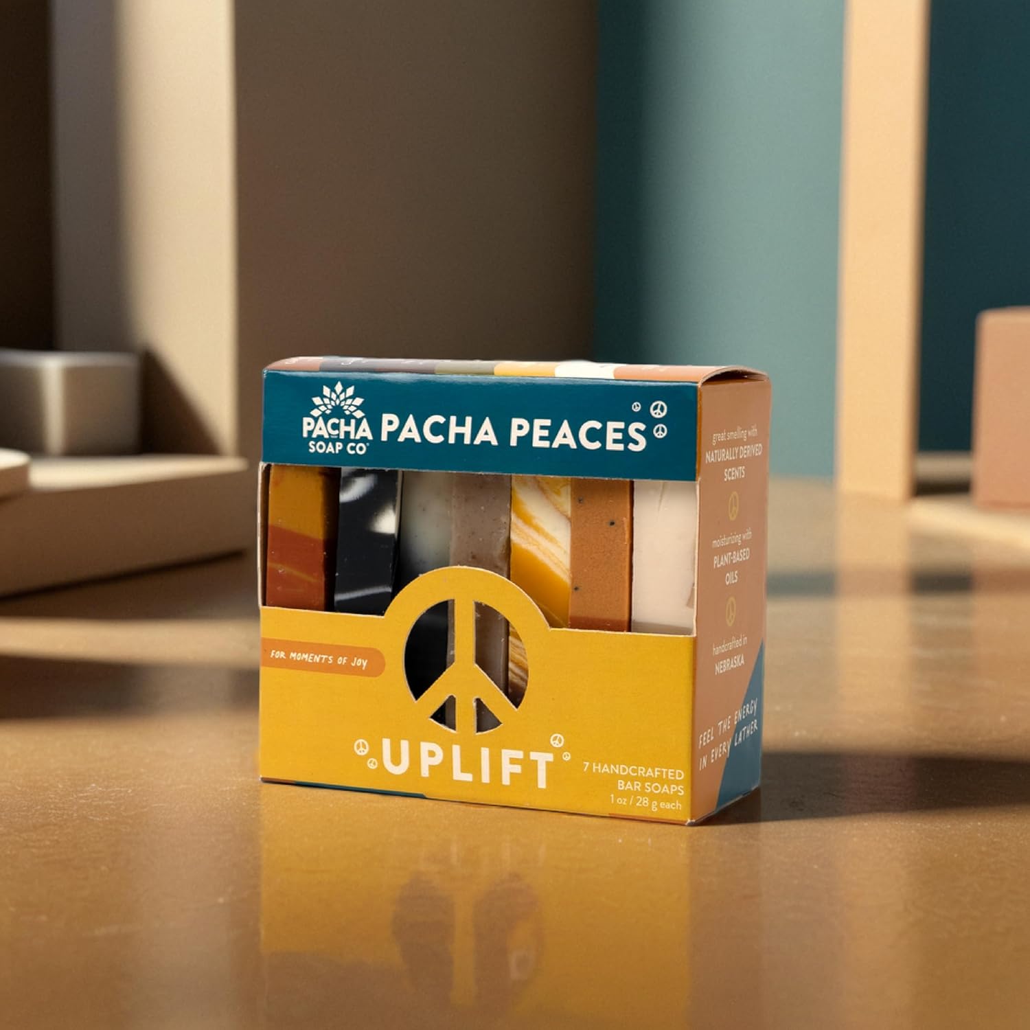 Pacha Soap Co. Bar Soap, Pacha Peaces, Uplift & Calm Bundle, 2-Pack (4 oz ea) - Premium, Handcrafted, Hydrating, Natural Face Wash, Hand Cleanser, Body Wash, Soothing Essential Oils