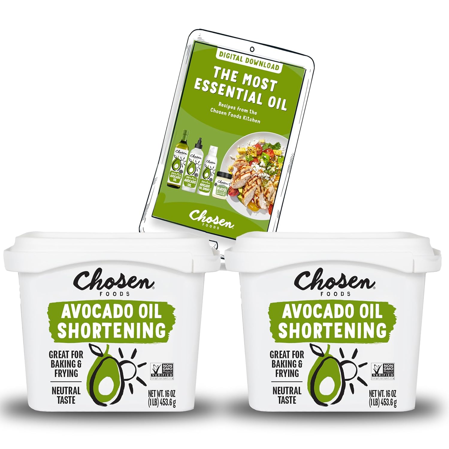 Chosen Foods Avocado Oil Shortening 16oz Bundle 2-Pack with Recipe eBook bundle