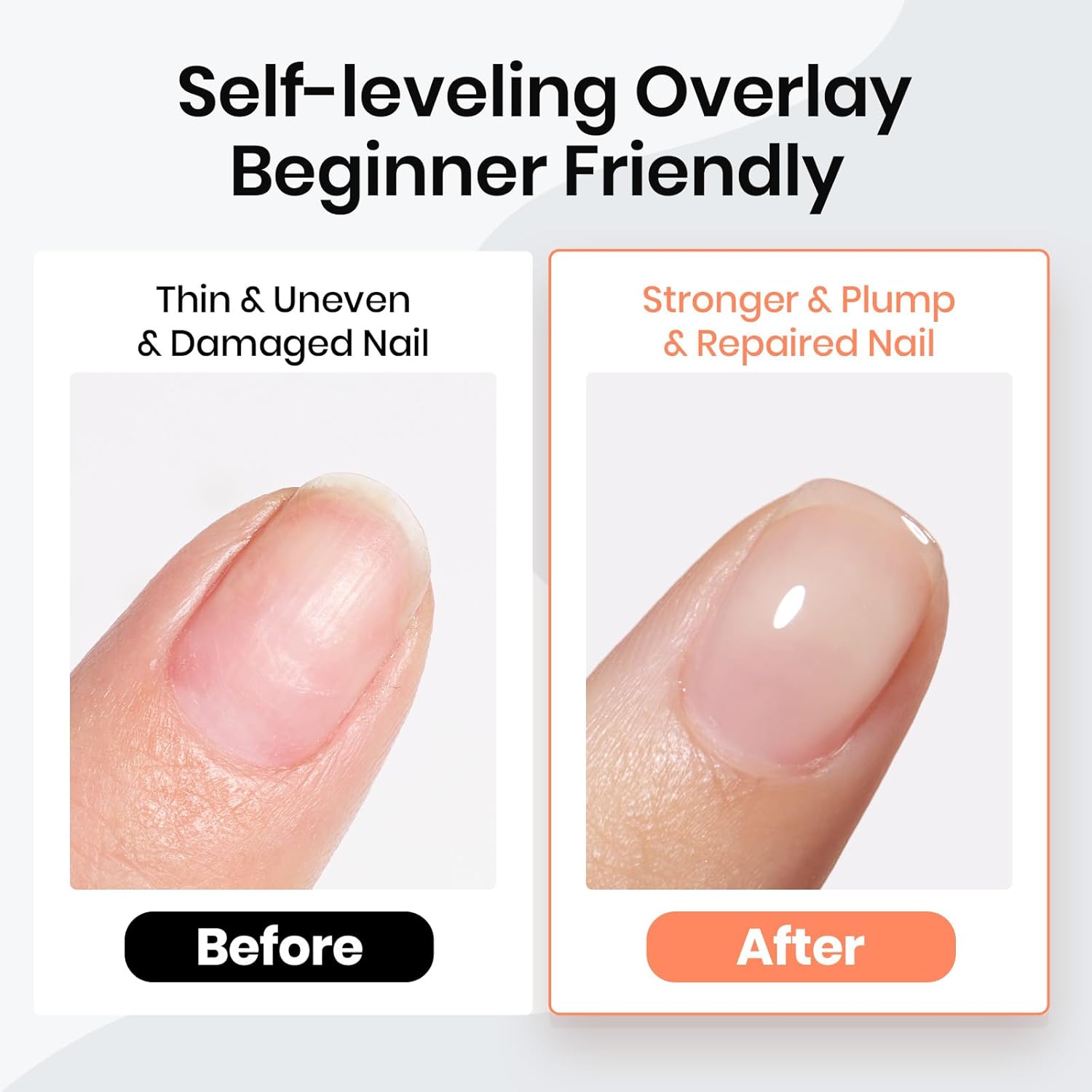 - 【5-in-1 Multi-Use Formula Saves Time】: Works as a base coat, builder gel, nail repair, overlay, and ridge filler — all in one bottle. No more switching products. Just apply, cure, and go. First choice for growing natural nails