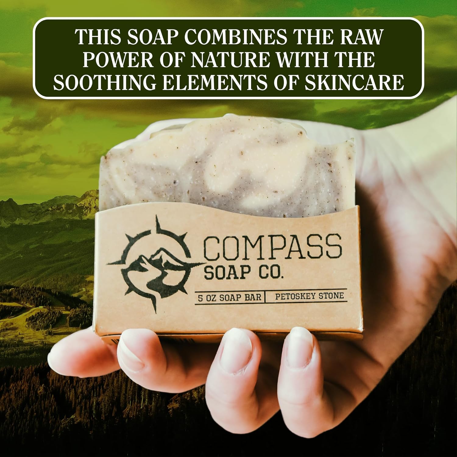Compass Soap Petoskey Stone | Natural Bar Soap for Men | Soap Bars with Minimalist & Gentle Lather | Best Mens Bar Soap | Natural, Paraben & Phthalate Free Bath Soap for Men | 5 oz. Pack of 2