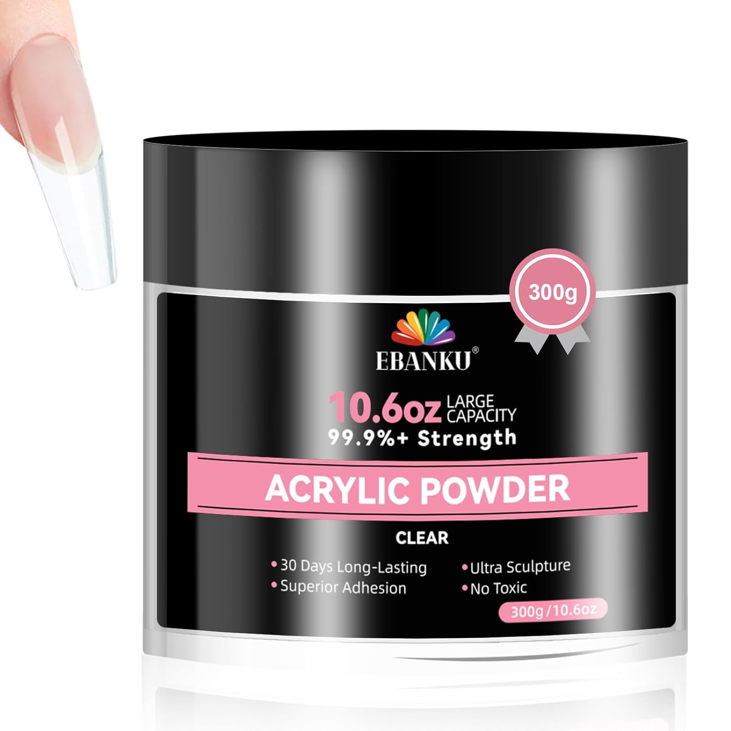 - 【Large Capacity Nail Powder】EBANKU 300g/10.6oz big capacity clear acrylic powder can satisfy you for many times using, and is perfect as base nails, feel free to DIY nail art for nail extensions design.