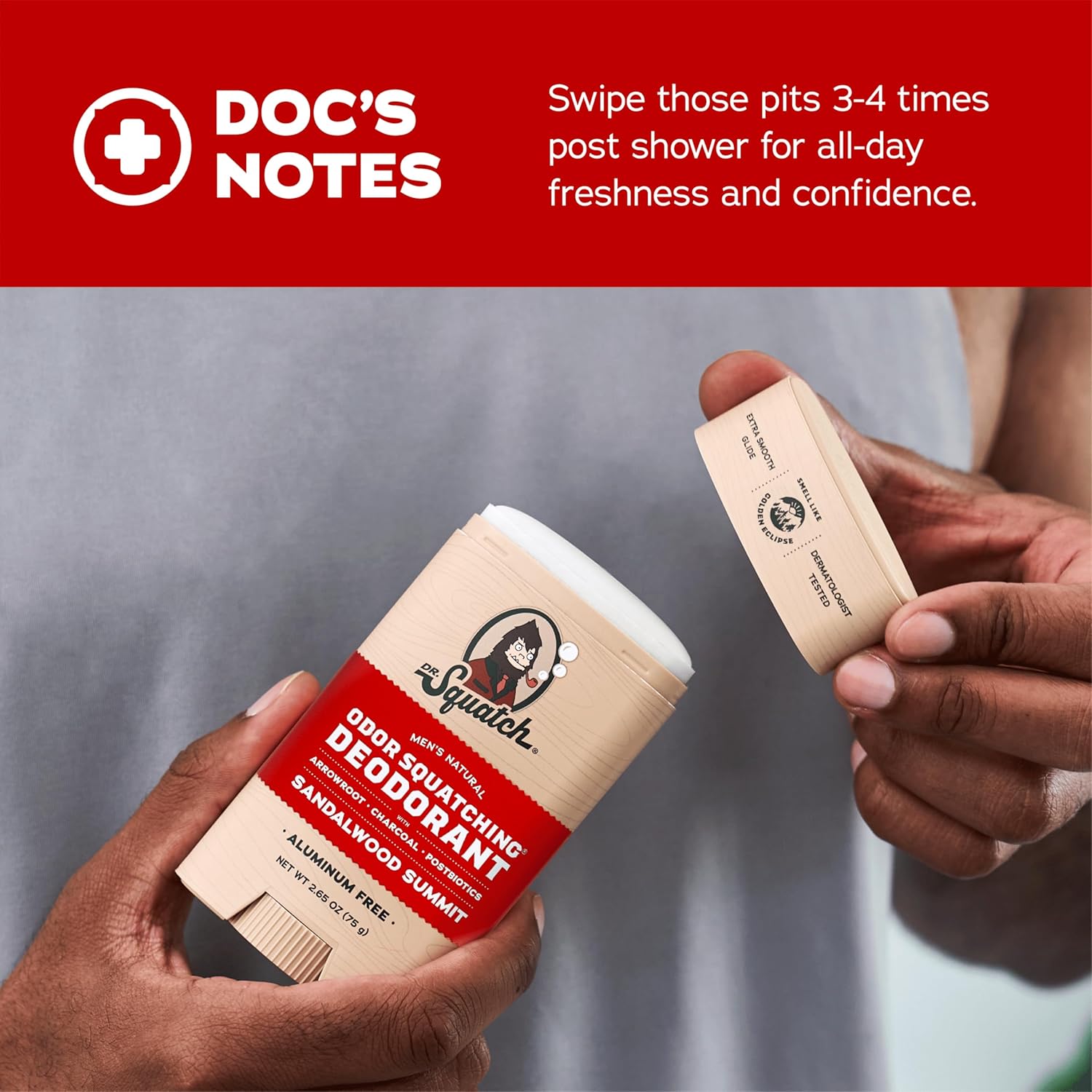 Dr. Squatch Natural Deodorant for Men - Odor-Squatching Aluminum Free - Sandalwood Summit (2.65 oz, 3-Pack)