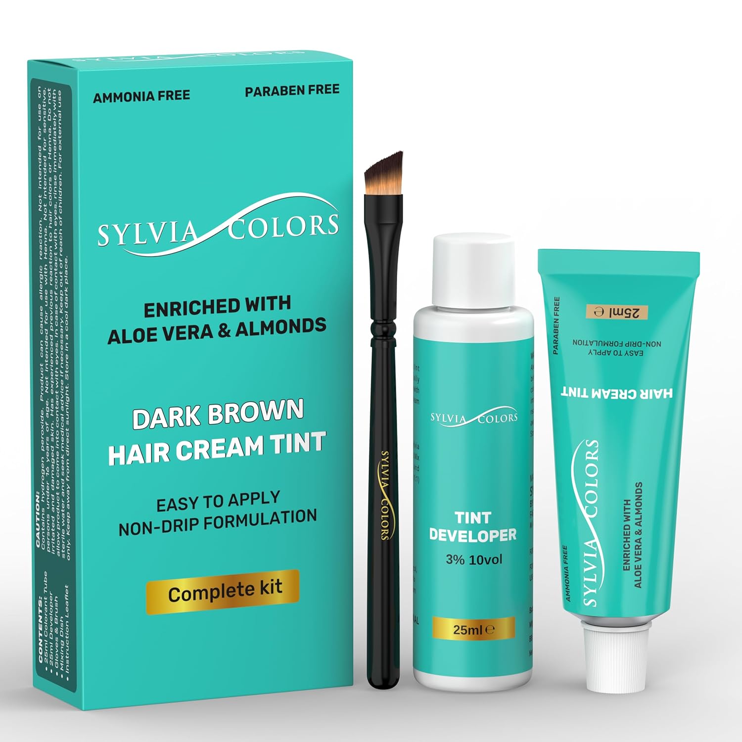 Professional Tint Kit Semi-Permanent 40 Applications Lasts 4-6 Weeks Spot Coloring Set WaterprooF (Dark Brown, 25 ML)