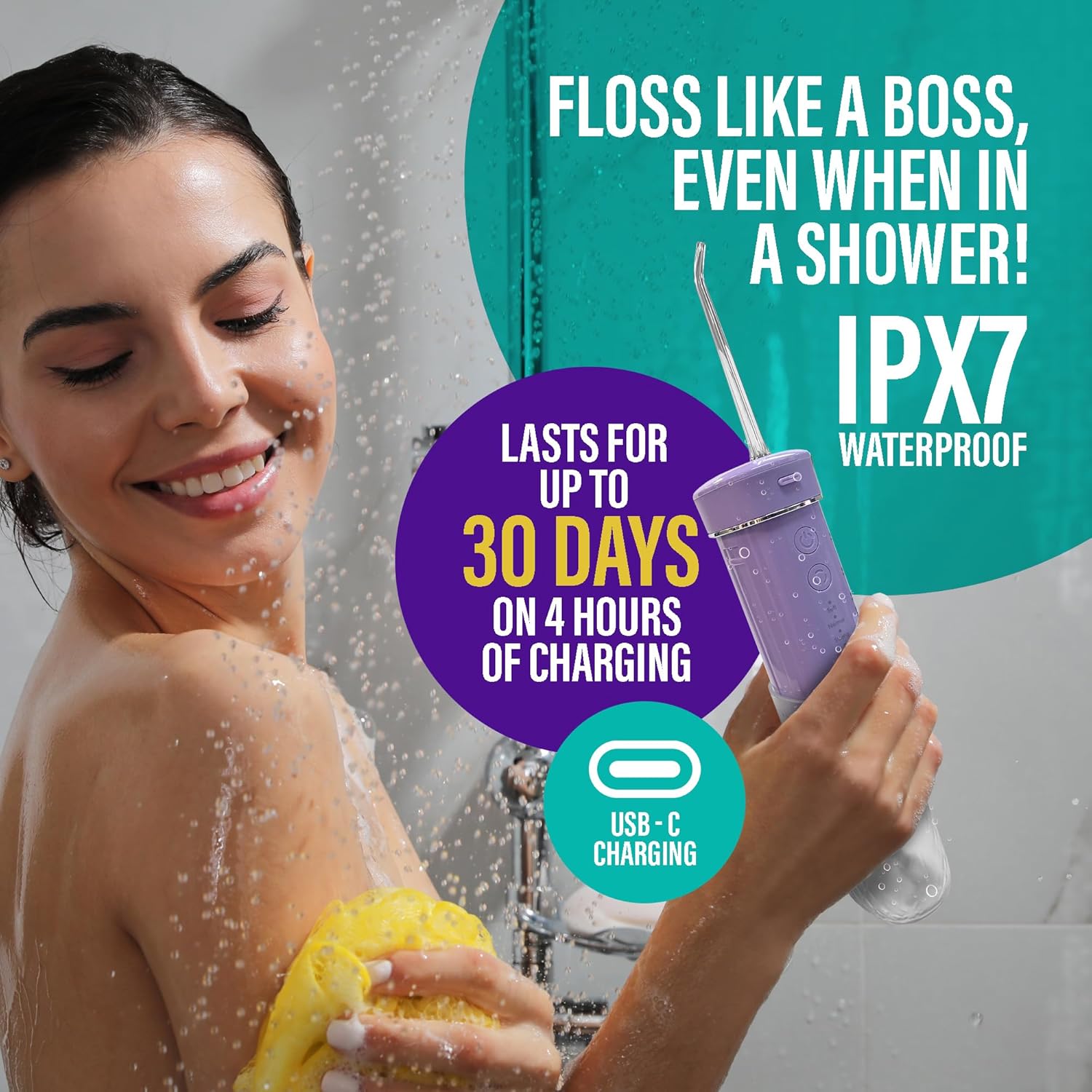 GuruNanda Compact Water Dental Flosser, Portable Travel Size Oral Irrigator Flosser with Collapsible 180 ml Tank, Smart Timer, 4 Flossing Modes, TSA-Approved - Lavender